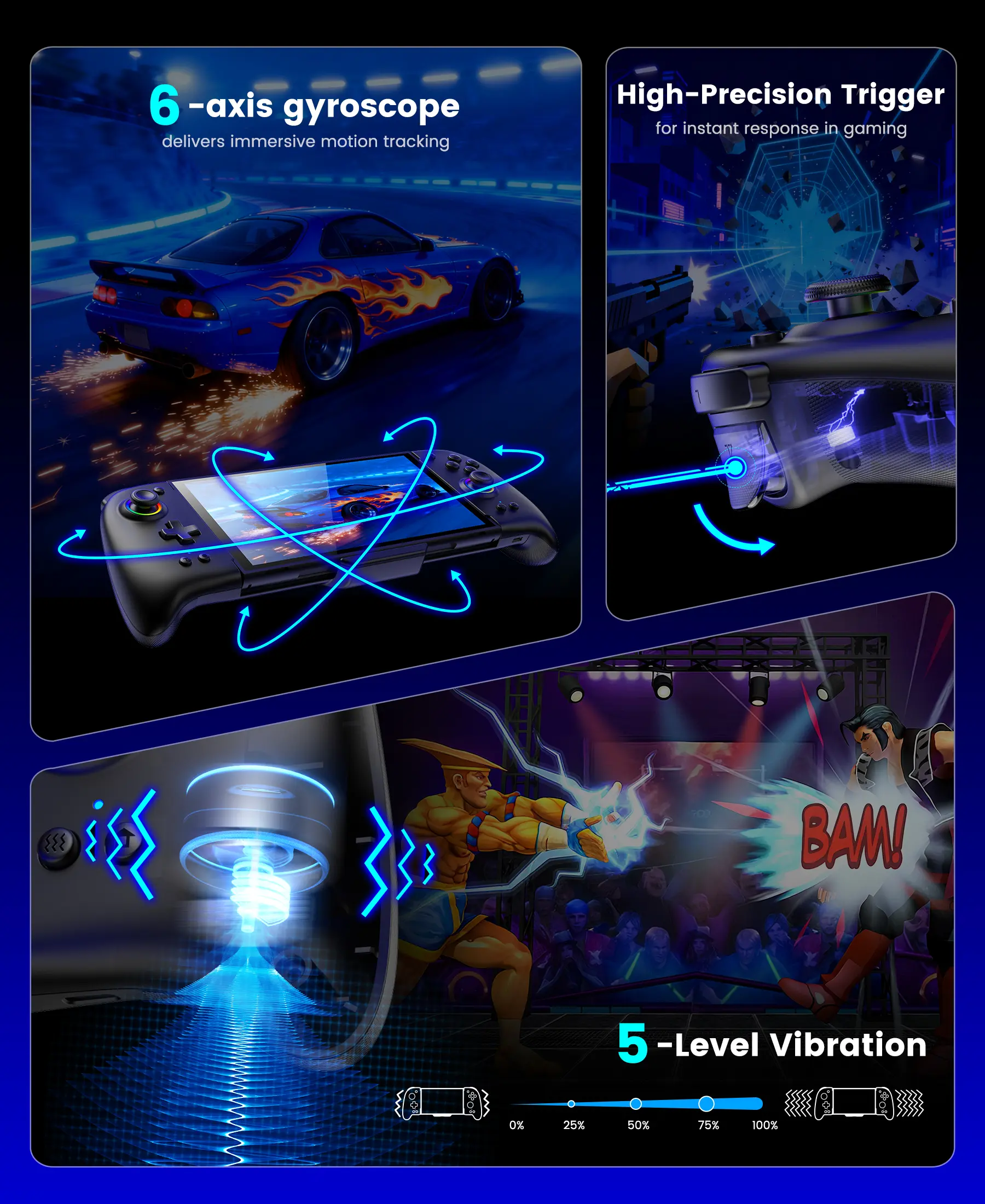 ·【Switch 2 Pro Upgrade Game Control】 Switch 2 macro controller customize single/multiple mappings (A+B+Y+L+ZL+R+ZR+D-pad), and auto-cycle macro button enables endless playback of personalized combos. Dual vibration motors with 5-level feedback, 6-axis gyroscope detects tilt for precise aiming/movement. Switch 2 turbo controller(5/s,12/s,25/s) for fast attacks to win.