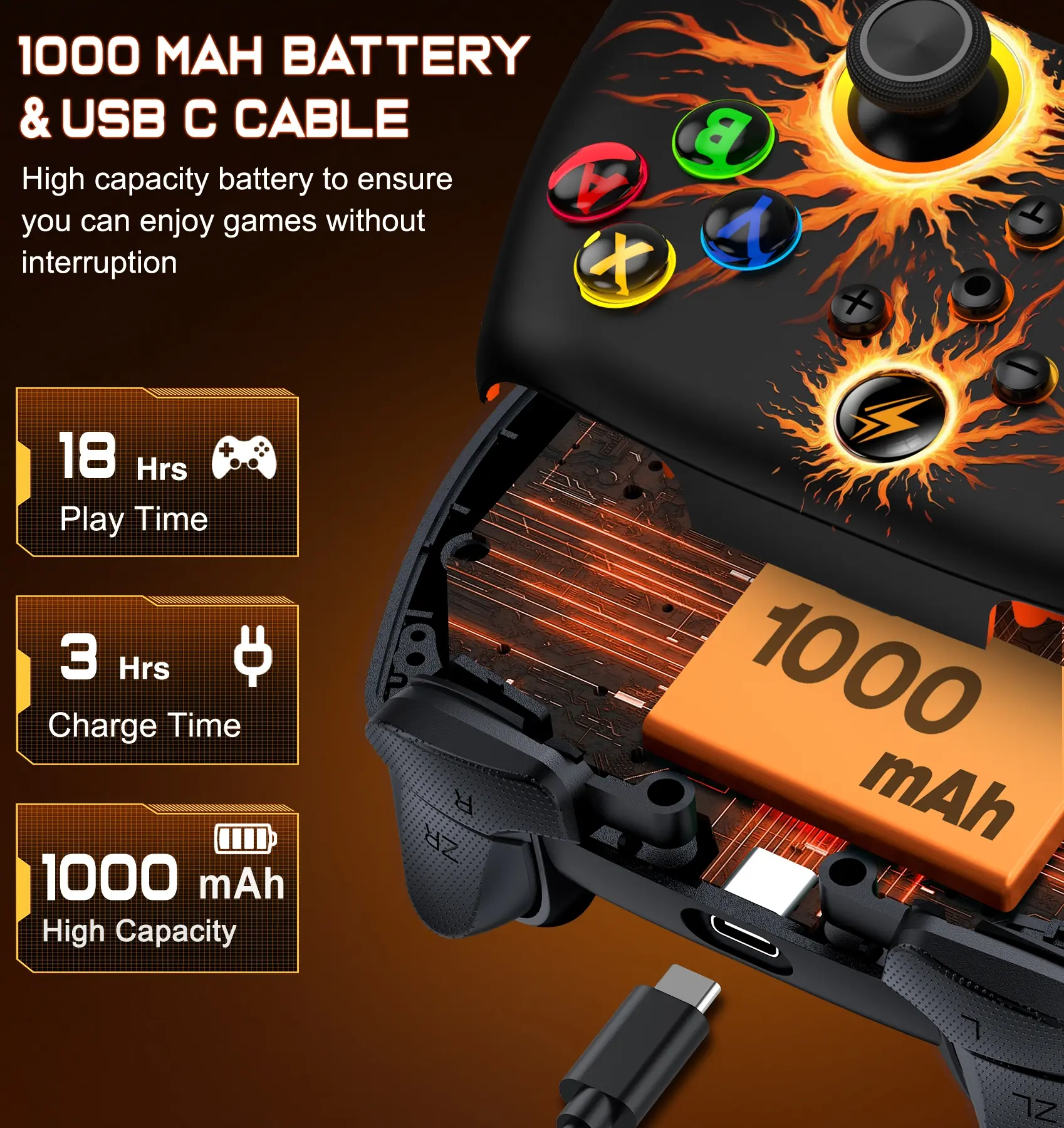 ·【1000mAh HIGH CAPACITY BATTERY】The wireless pro controllers for switch built-in 1000mAh battery which provide more than 16 hours playing time on RGB LED lit mode, you can enjoy longer game playing without interruption, only need 3 hours to fully charged with an included USB type c fast charging cable. Connected state, if no operation within 20 minutes, the controller automatically shut down,simply press "HOME" key to wake up and re-connect your Switch console.