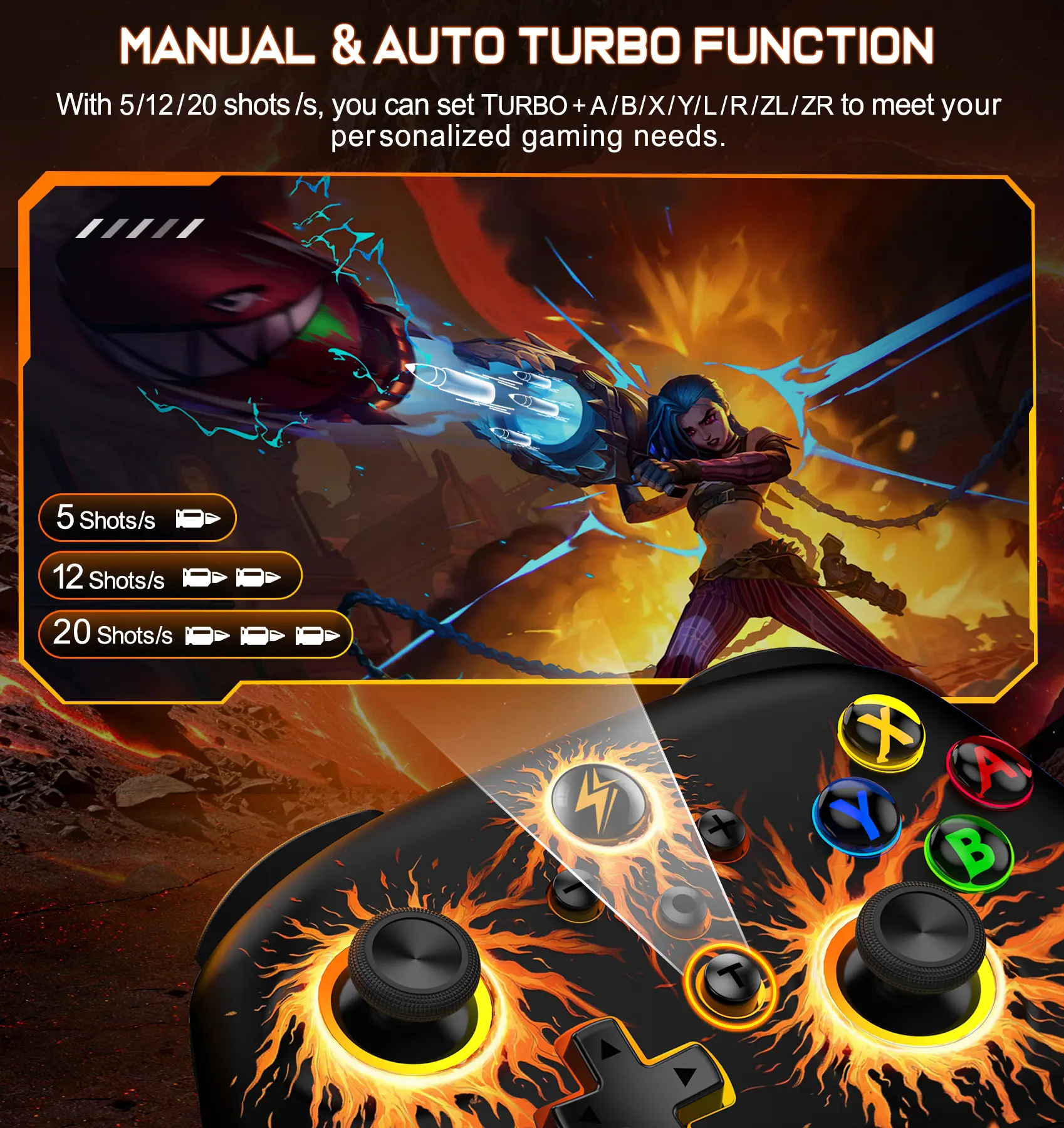 ·【CUSTOM BUTTONS & ADJUSTABLE TURBO FOR ALL MUTIL-PLATFORM】With macro function key [M], ML/MR back buttons can map basic function keys of A/B/X/Y/L/ZL/R/ZR/L3/R3/D-pad to reach 1-20 combine function, to meet all your need in different game to improve game experience. Double click [SR] [SL] can temporarily open/close key function of macro function. Support Auto TURBO/Manual TURBO mode. 3 adjustable speeds: 5shots/s, 12 shots/s and 20 shots/s.