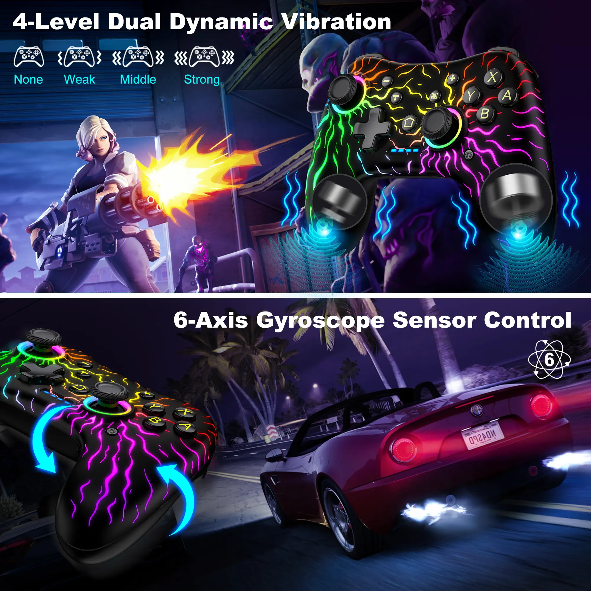 Ever wish your gaming controller could match your style and gameplay? The Beboncool Switch Controller is here to level up your experience across Nintendo Switch Pro, Lite, OLED, PC, iOS, and Android. With 8 vibrant LED colors and 5 flashing modes, you can customize your gaming ambiance to suit any mood or game. Feel every punch and explosion with dual vibration motors combined with a 6-axis gyro sensor offering 4 levels of feedback for ultra-realistic gameplay. The updated Hall Effect joystick ensures smooth, precise control without annoying drift, while programmable buttons and turbo modes let you tailor your controls to your playstyle. Plus, extra back buttons and keys simplify complex moves, and the one-key wake-up feature gets you into the action fast. Whether you're capturing epic moments or battling online, this versatile controller has your back. Ready to upgrade your game? Grab the Beboncool Switch Controller and play your way!