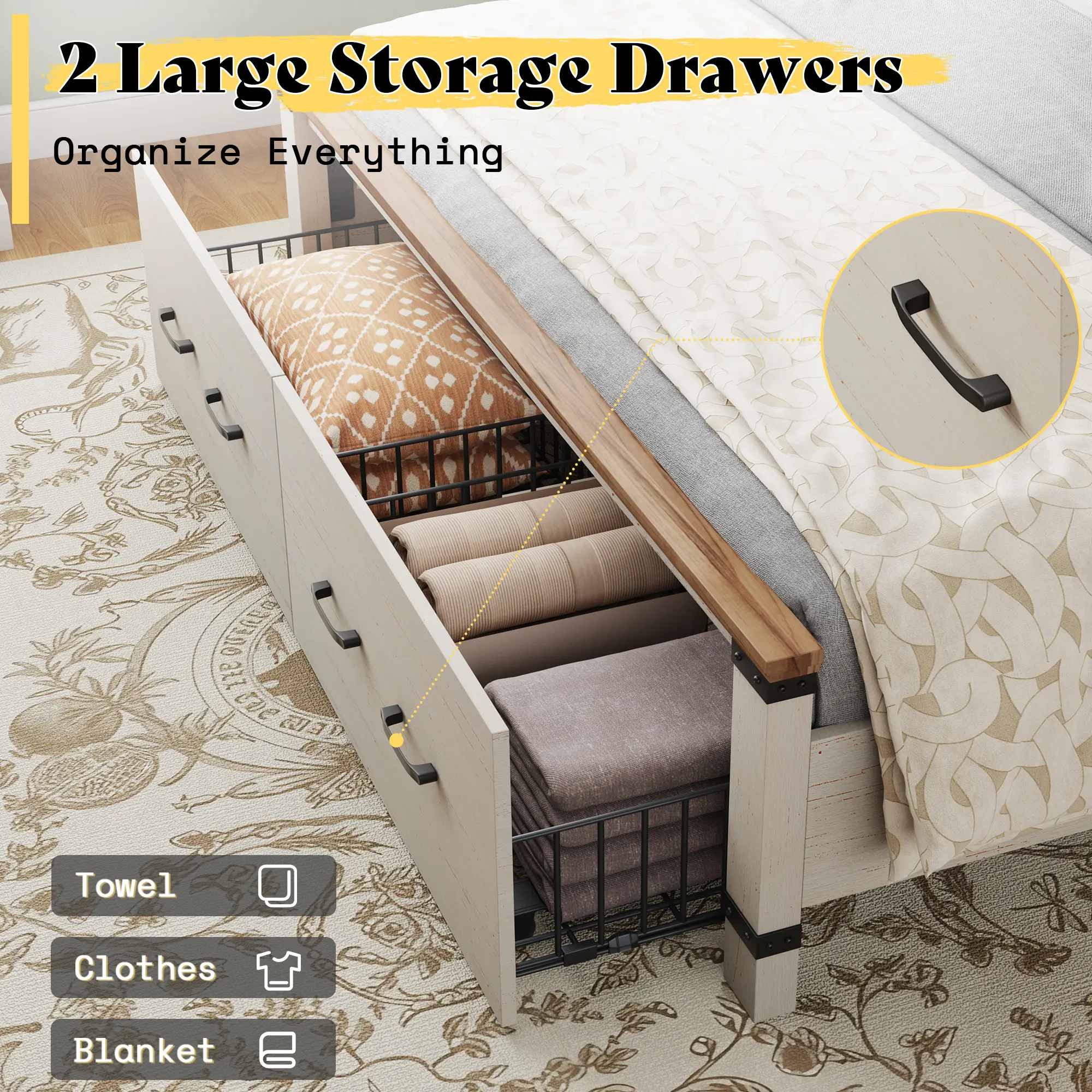 • Ample Storage: This bed frame with storage features large storage drawers at footboard, ideal for organizing bedding, clothes, and other essentials, making it a perfect bed frame with storage