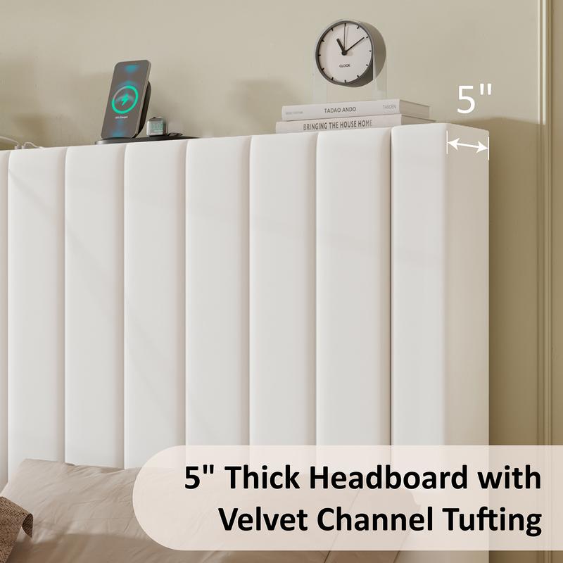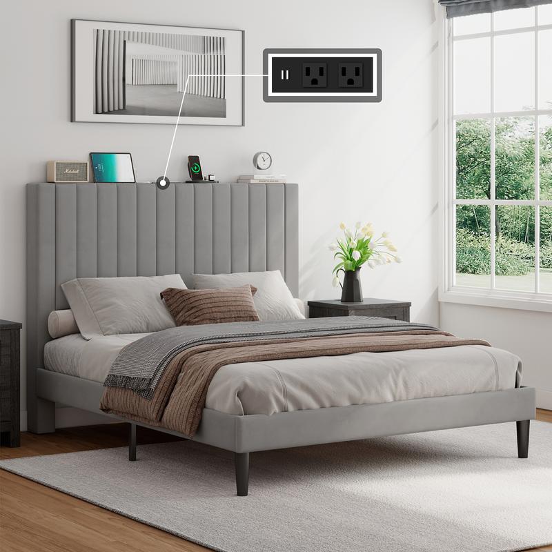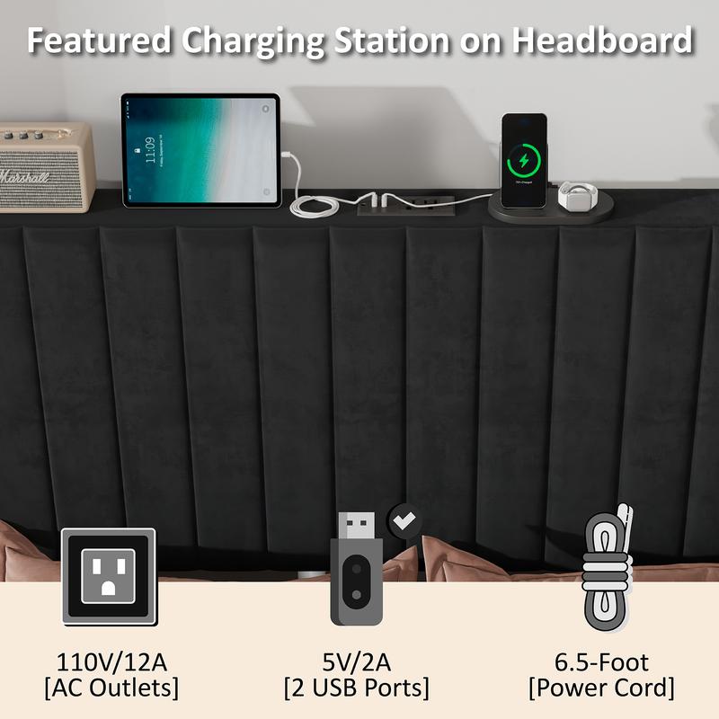 ·CHARGING STATION HEADBOARD: Featured 2 Outlets & 2 USB Ports on headboard, it's convenient to plug in phone, tablet or lamp any time, it's also practical to store books, decorations or a clock within your reach.