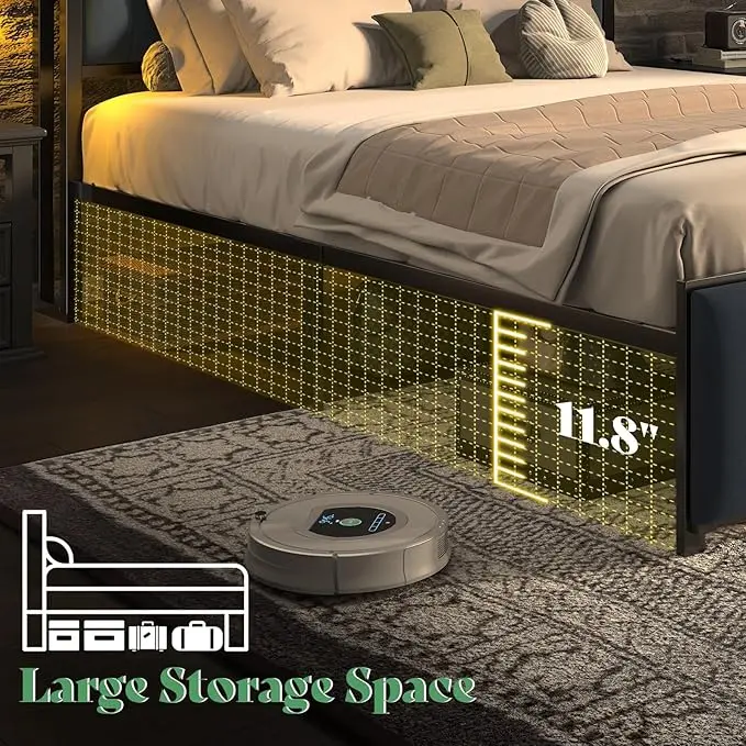 ·Expand Storage Space: Bed frame is 12 inches from the ground to improve space utilization. Wood metal bed can store bulky items under them and allows the sweeping robot to pass easily.