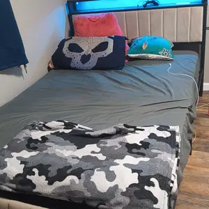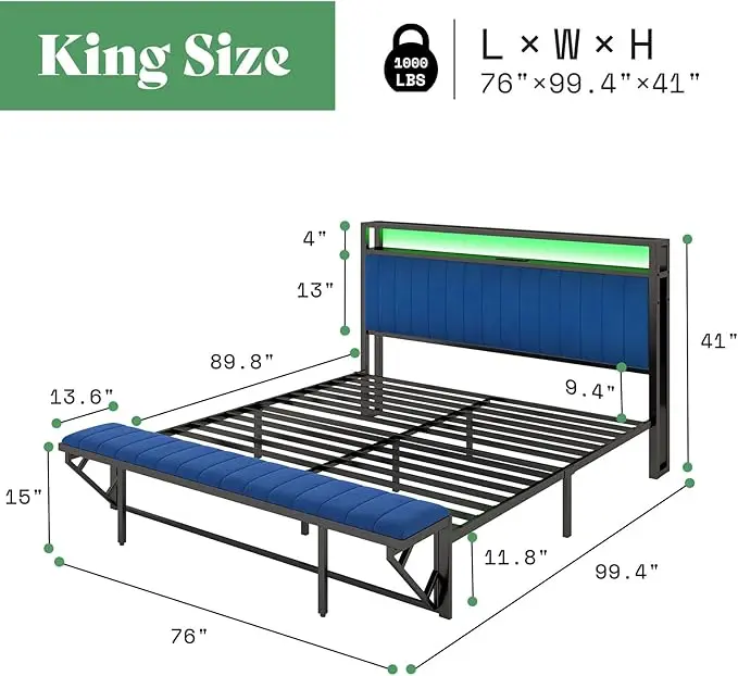·[Velvet Upholstery with RGB LED] Indulge in luxury with velvet upholstery and RGB LED system offering over 1000 colors. Control lighting modes via remote/ APP for a personalized bedroom ambiance