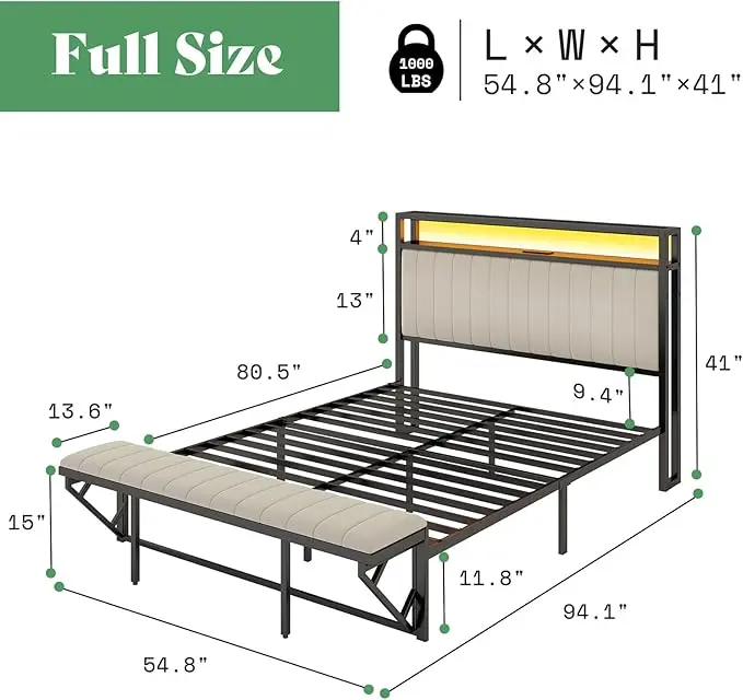 ·Storage Space & Charging Station: Bed frame has 2-layer storage with built-in 2 sockets & USB ports, can charge phones, pads, and others at the same time. More storage space can completely replace the nightstands.