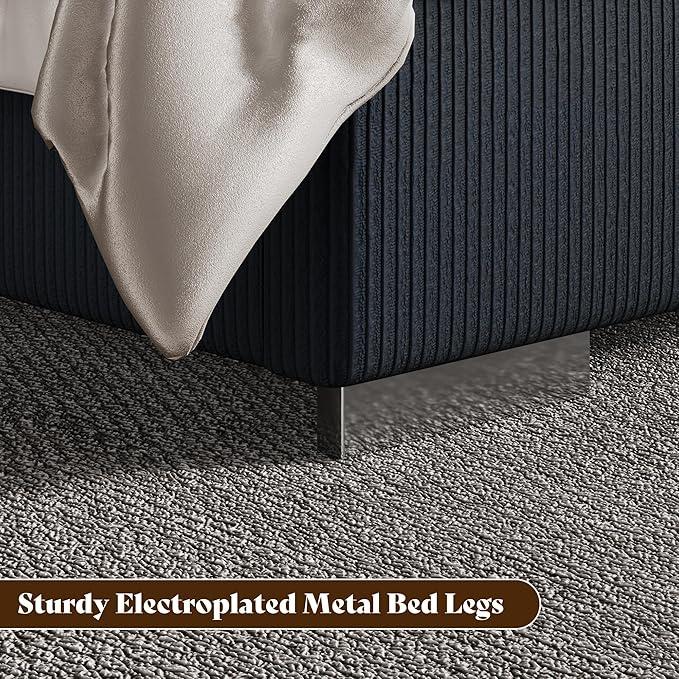 • Soft Corduroy Upholstery: The headboard, footboard and side rails are padded with corduroy upholstery, providing a luxury texture that enhances the overall appeal of the modern bed frame