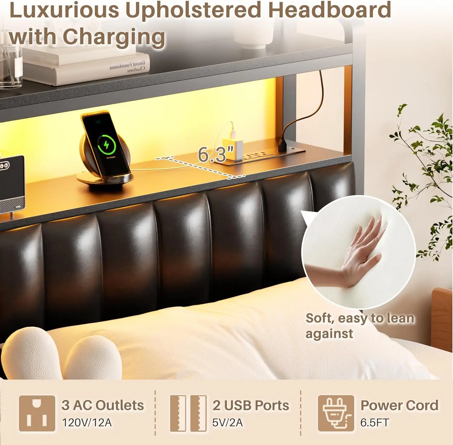 Upholstered in premium faux leather, the headboard is smooth to the touch and lends a sleek texture to the overall look. The bed headboard has height-adjustable mounting positions to match the ideal height for your needs. The top leaves ample 6.3-inch-wide space that can be used as a storage shelf for placing your daily necessities.