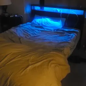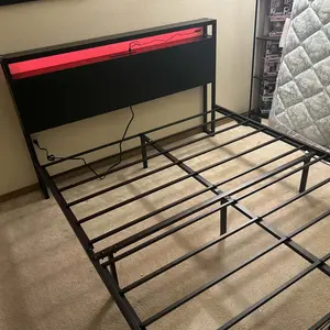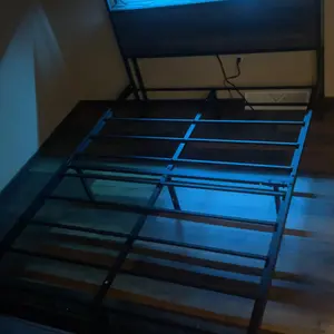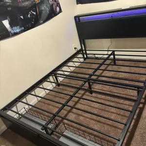 Love the bed frame, very sturdy. Love the lights too! don’t really like the drawers since they aren’t actually attached but that’s a personal preference, my bf put the bed together in about 1hr 45