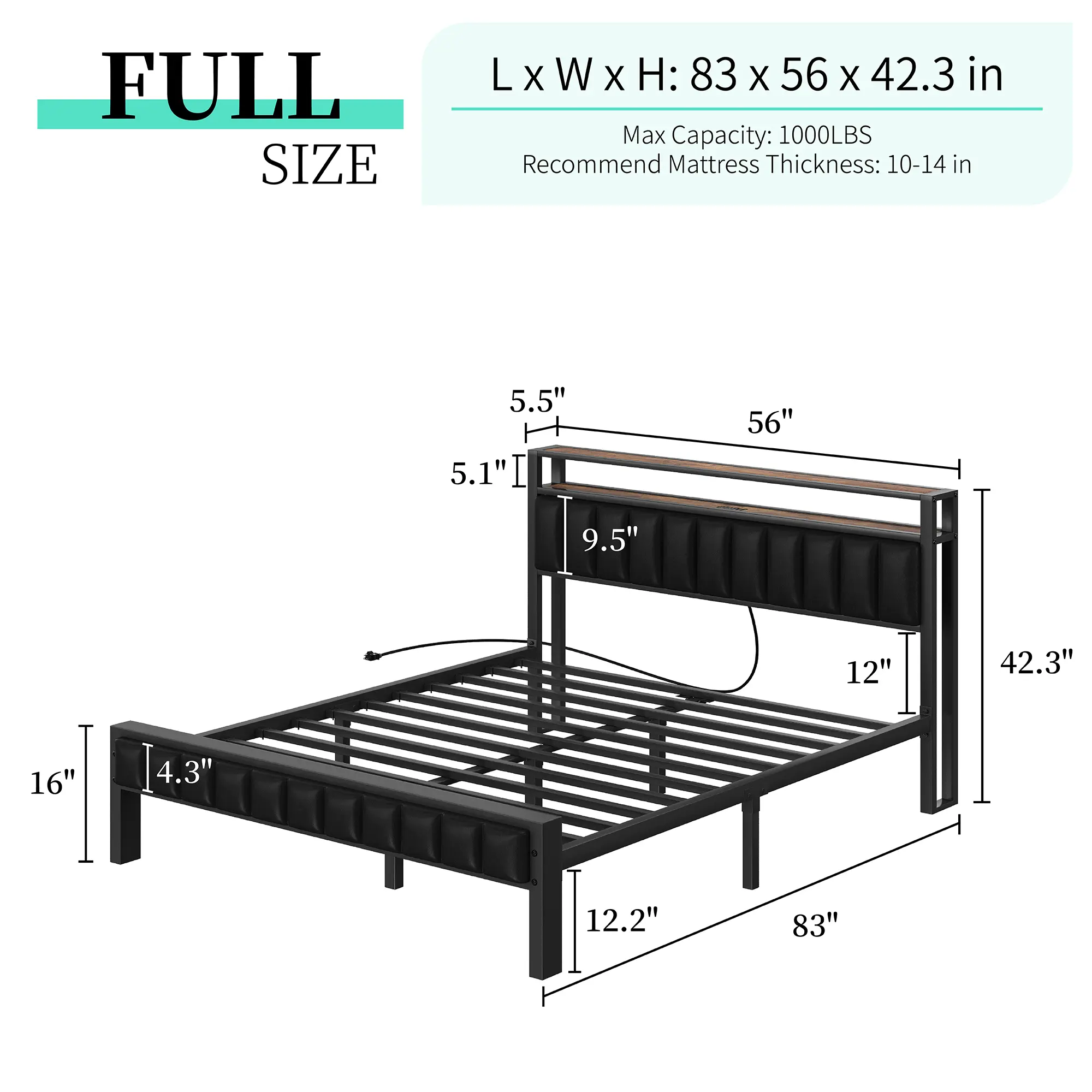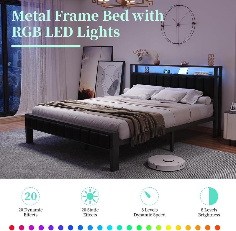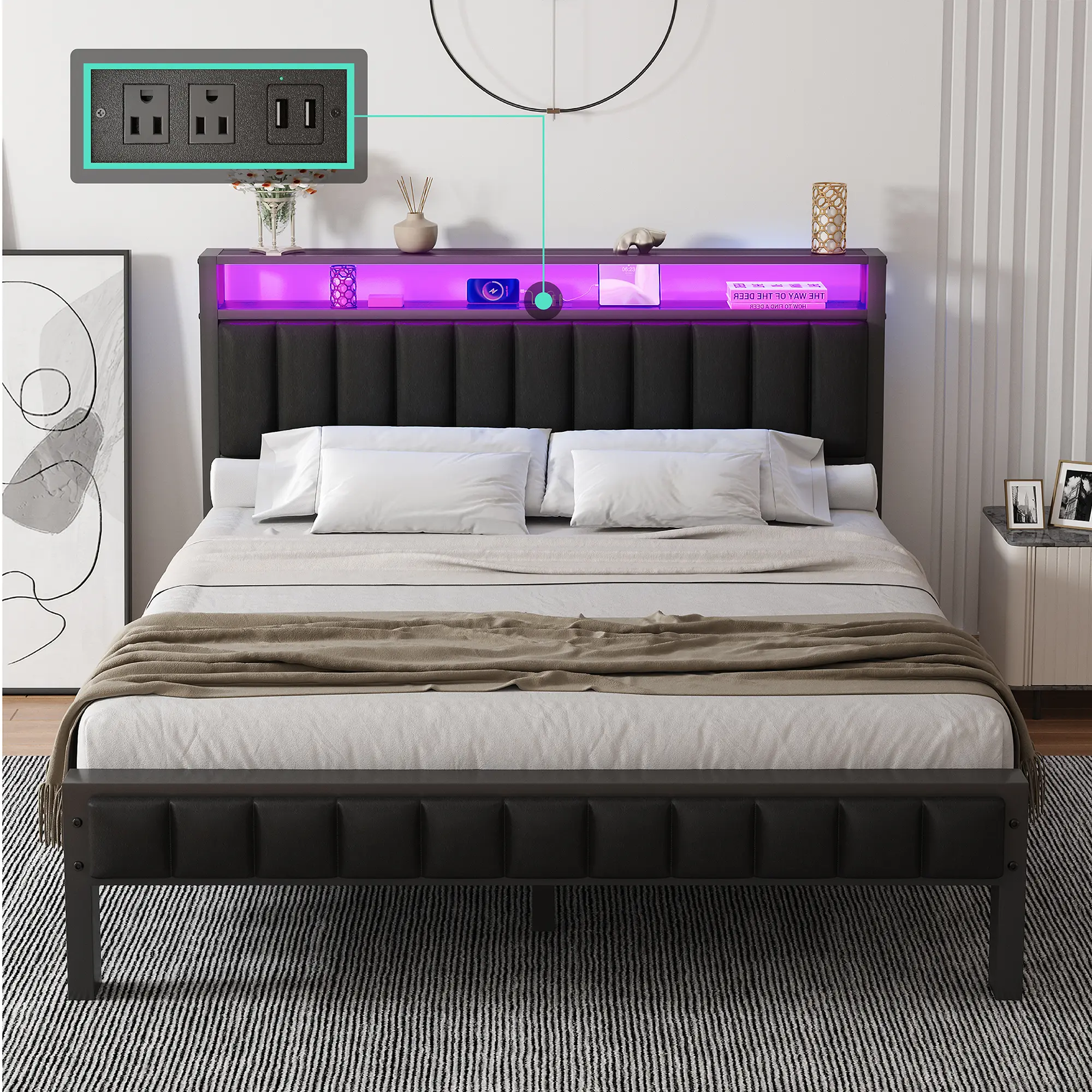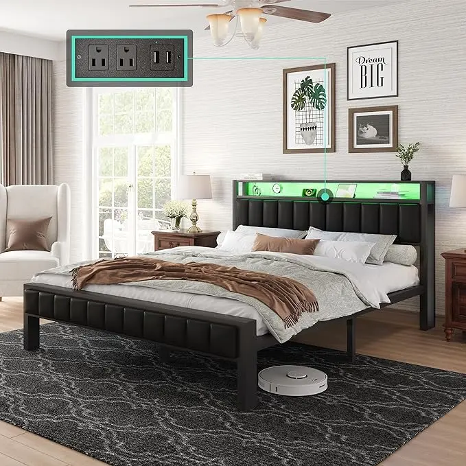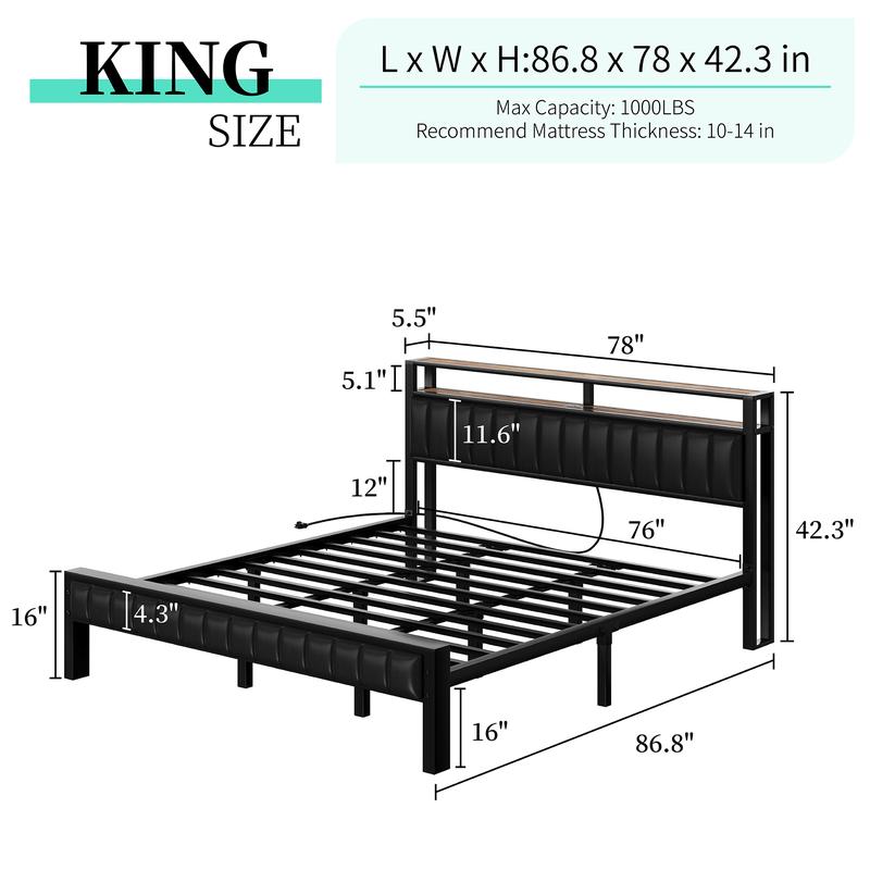 ·Storage Space & Charging Station: Headboard has 2-layer storage with built-in 2 sockets & USB ports and an external power supply cord, can charge phones, pads, and others at the same time. More storage space can completely replace the nightstands.