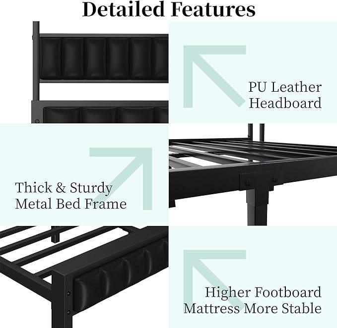 ·Metal bed frame: All-metal bedstead, simple contemporary style. Sturdy doubly prolonged use time easy load-bearing 900lbs. There are rubber strips on each slat to increase mattress stability and reduce muting.
