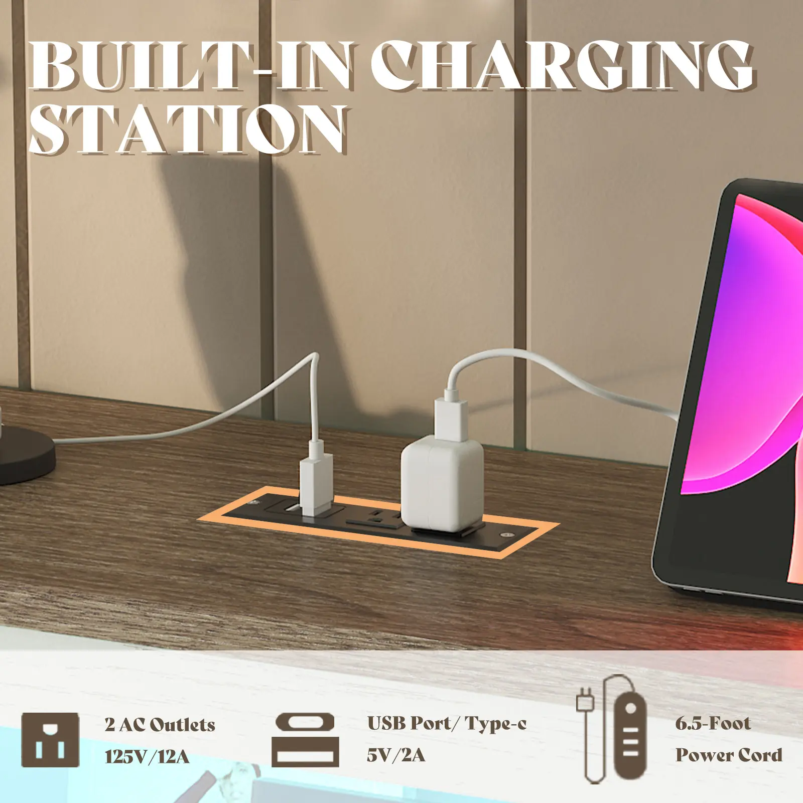 ·Charging Station: Farmhouse wood bed with 2 AC outlets, a USB port and a Type-C port. Make it easy to power up your cell phone, tablet or other electronic devices to ensure they are always available