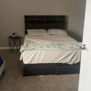 2 Storage Drawers & Built-in Shelves Two large storage drawers hold up to 20 gallons, perfect for clothes or bedding. The headboard shelves keep essentials like your phone, alarm clock, and books within reach.