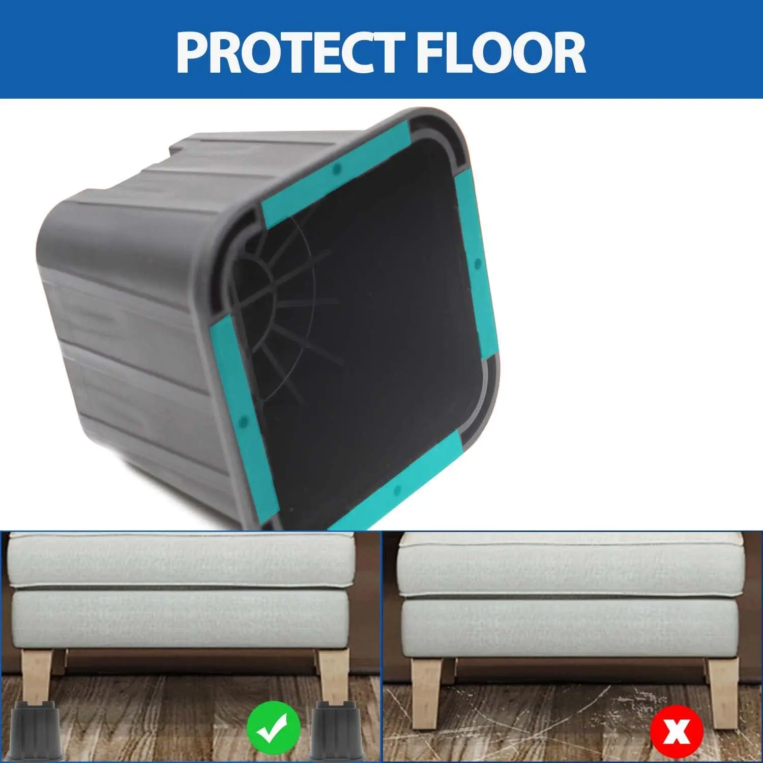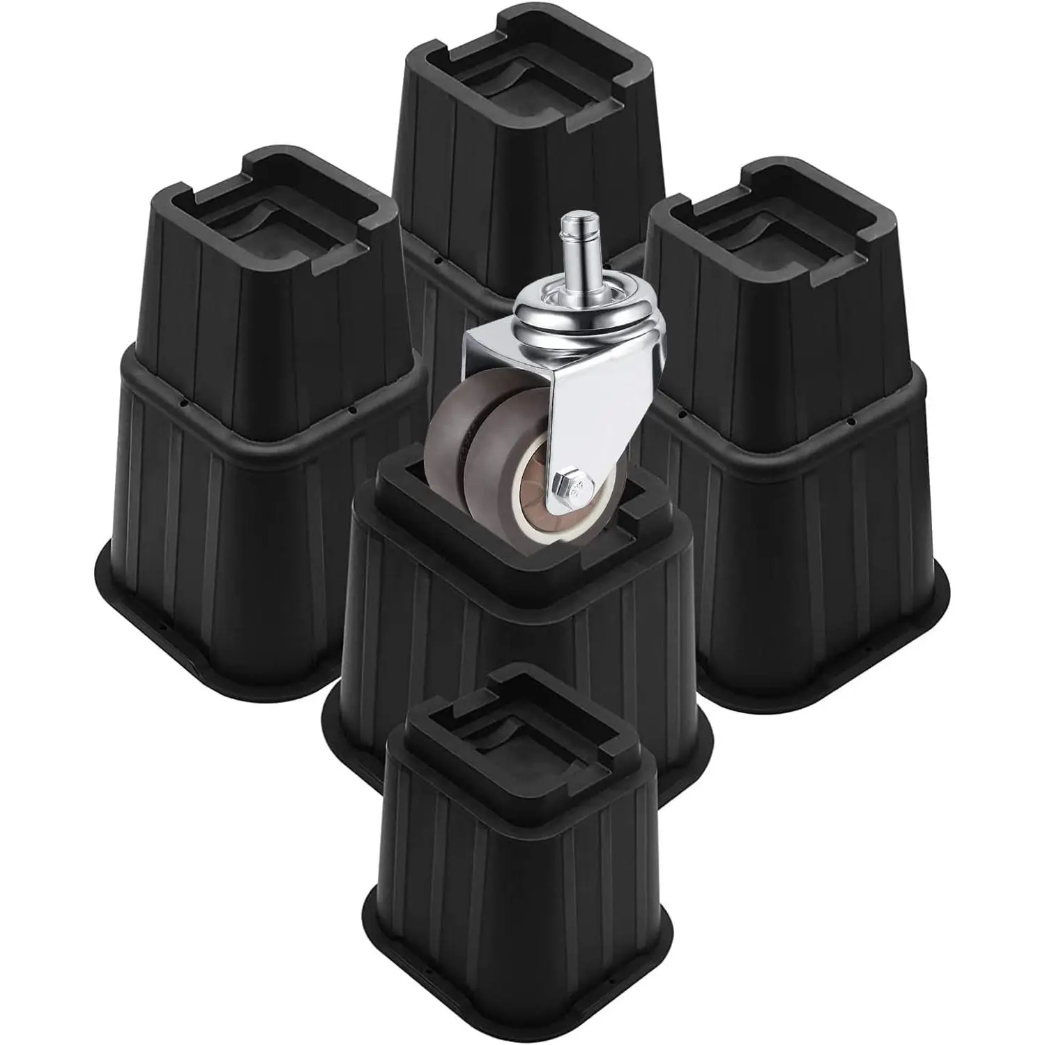 Widely application; Bed Lifters or Casters fit securely into the recess cup built into the top of the Bed Risers; This bed risers are suitable for beds, sofas, cabinets, tables