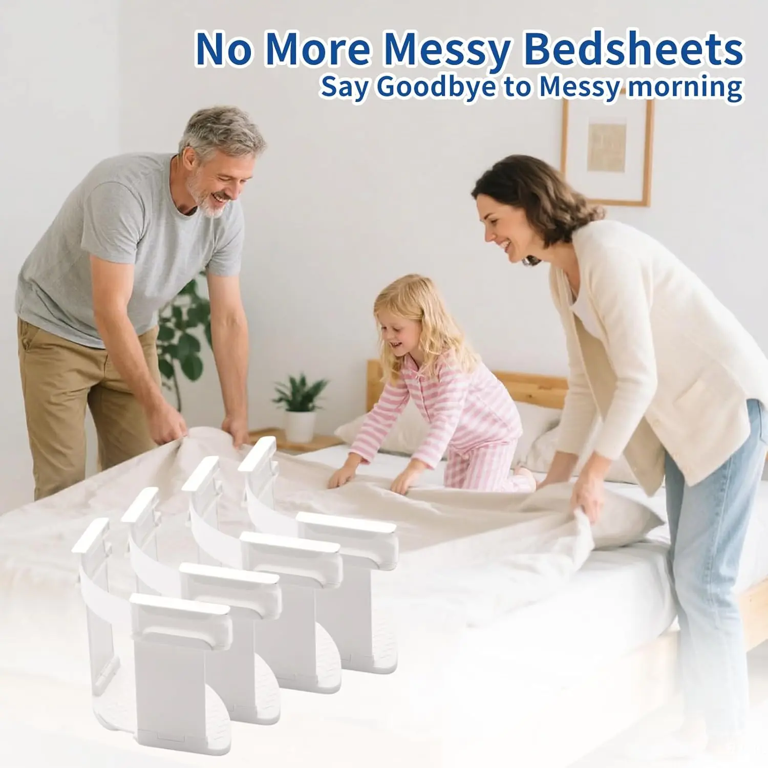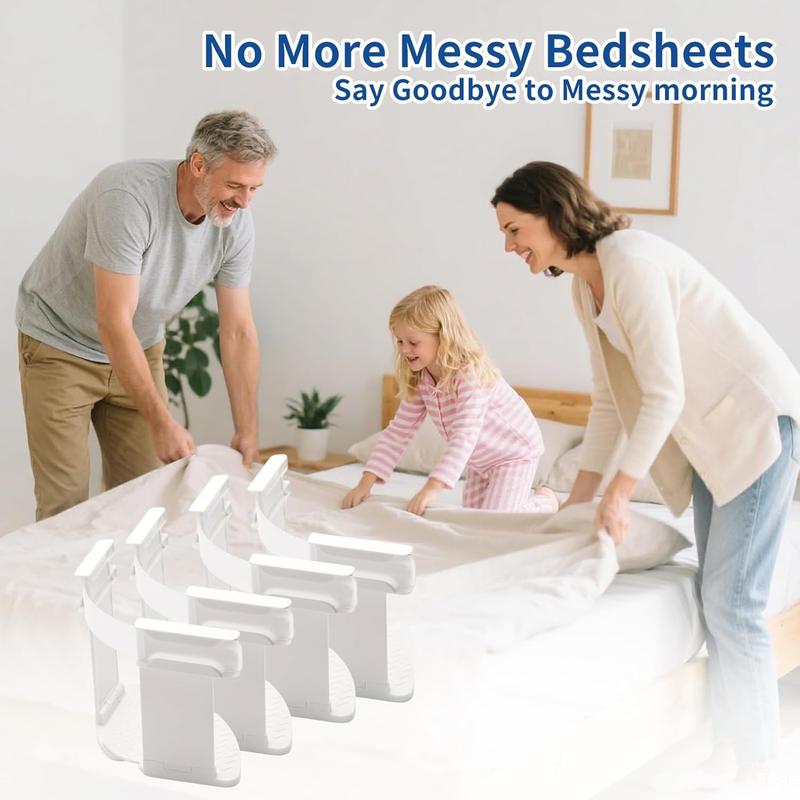 Made of premium ABS material, our sheet holders feature innovative clips that firmly grip any fabric. They prevent sheet displacement, improving sleep quality and comfort. Wake up to a flat and snug bed every day. No need to tidy up bed sheets daily.