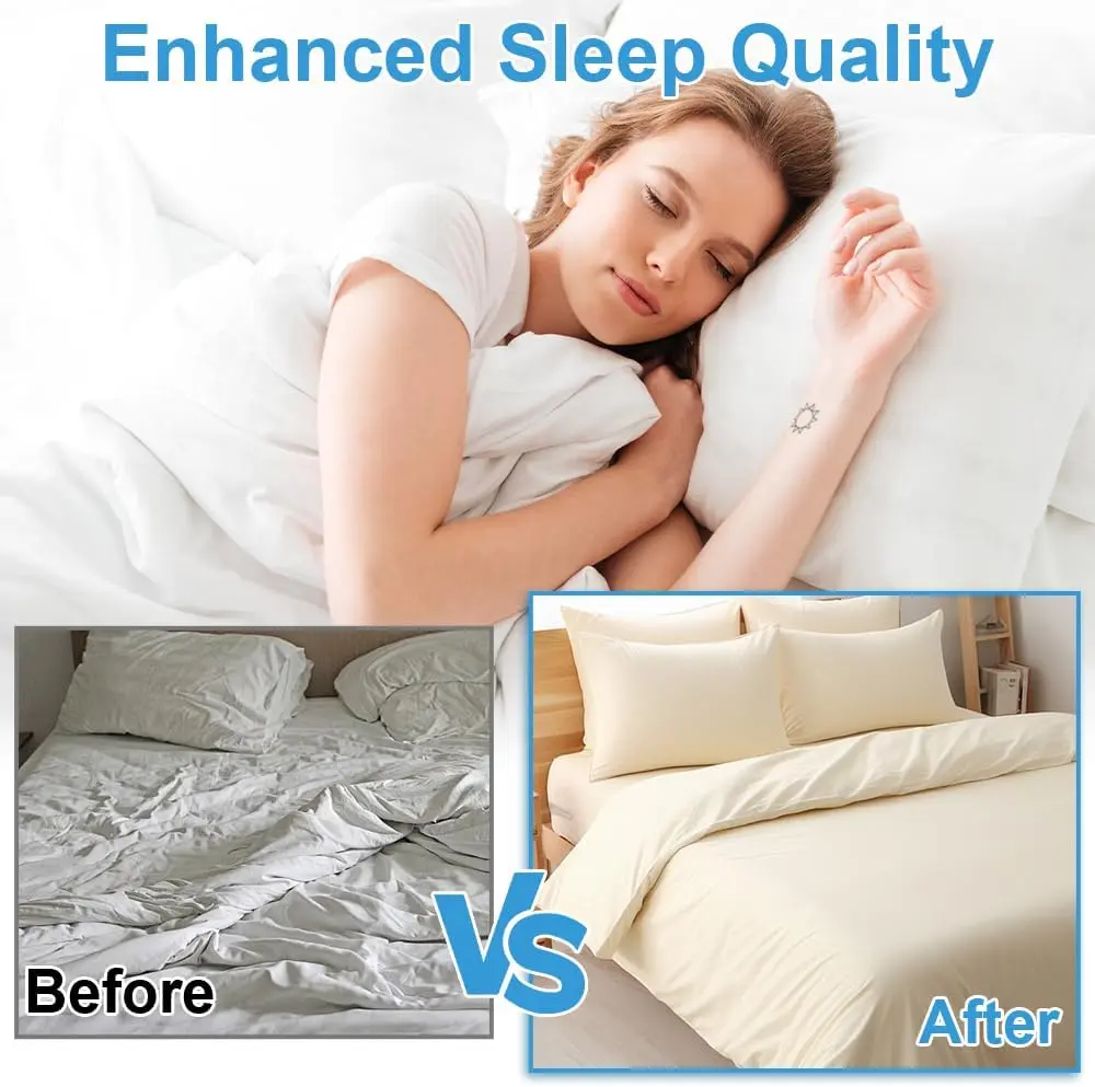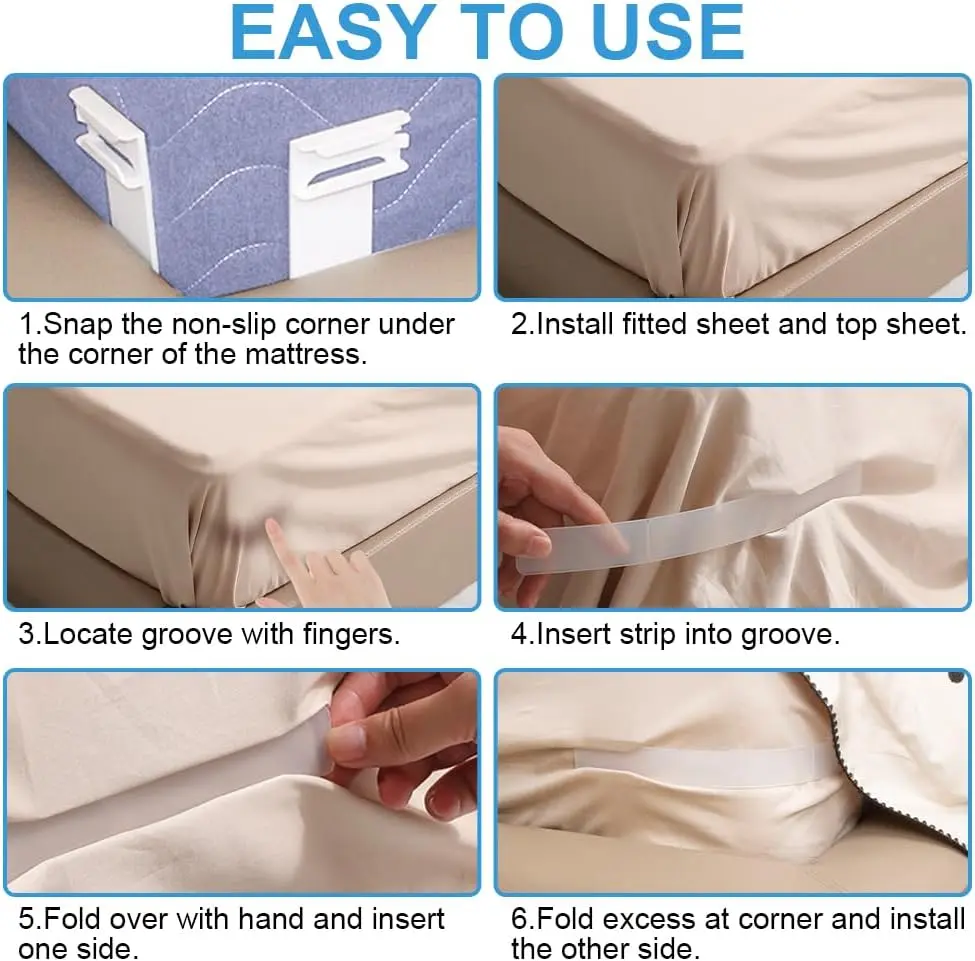 Tired of fitted sheets popping off your mattress? Our bed sheet holders for corners ensure your bedsheet stays in place. This is a convenient and reliable solution for keeping the bed tidy. Enjoy the benefits of keeping flat top sheets and knot-free safety. No sliding during sleep.