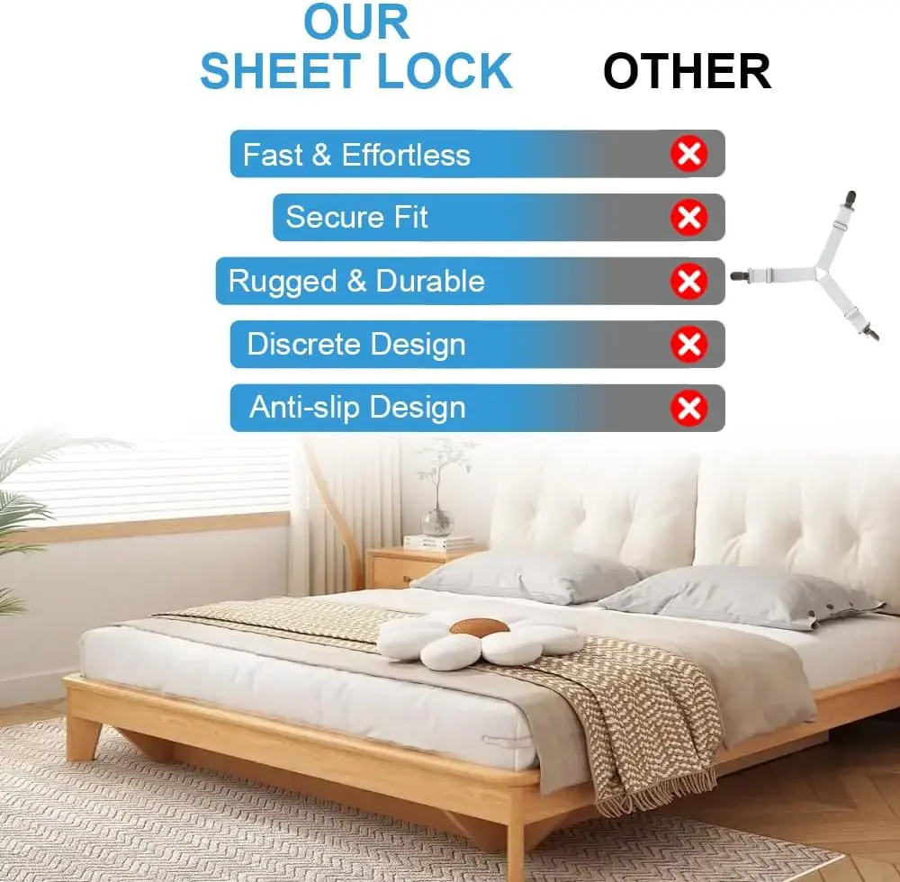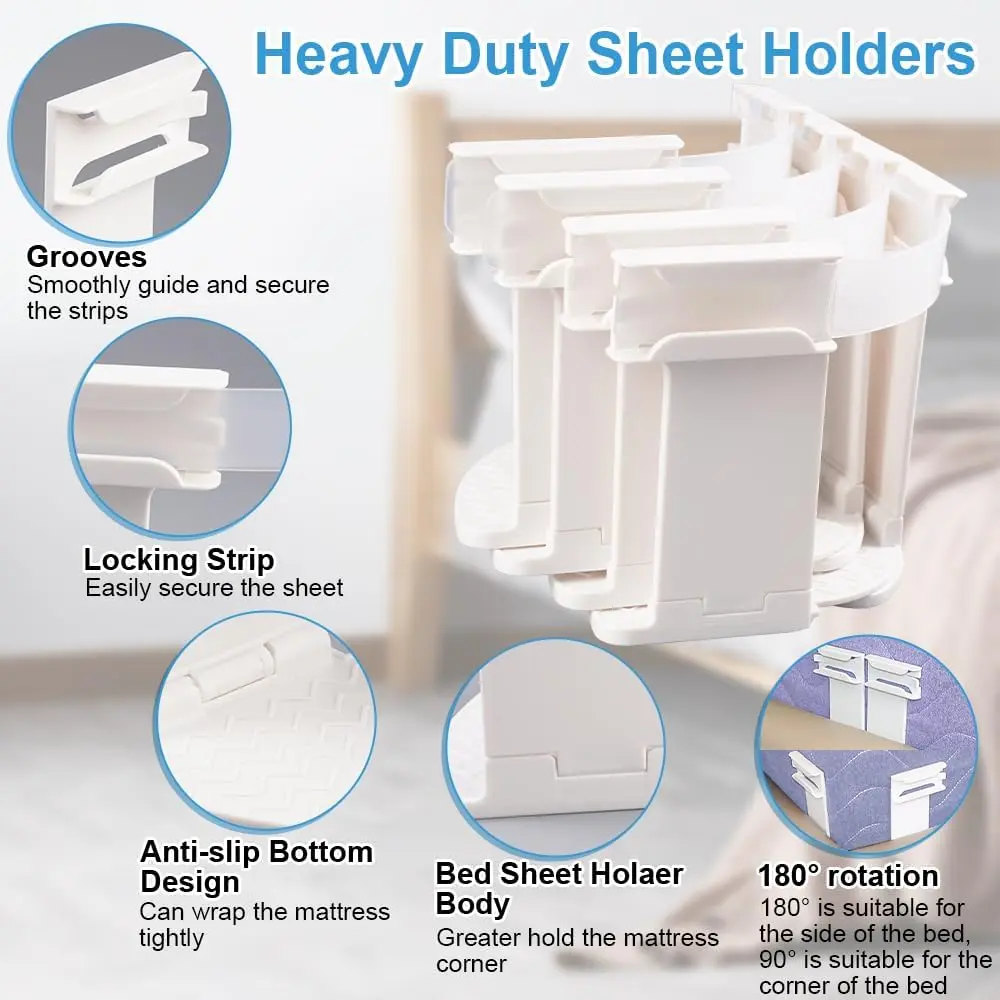 🛌 Bed Sheet Holders for Corners - Lock Sheet Holders Keep Sheets Tight