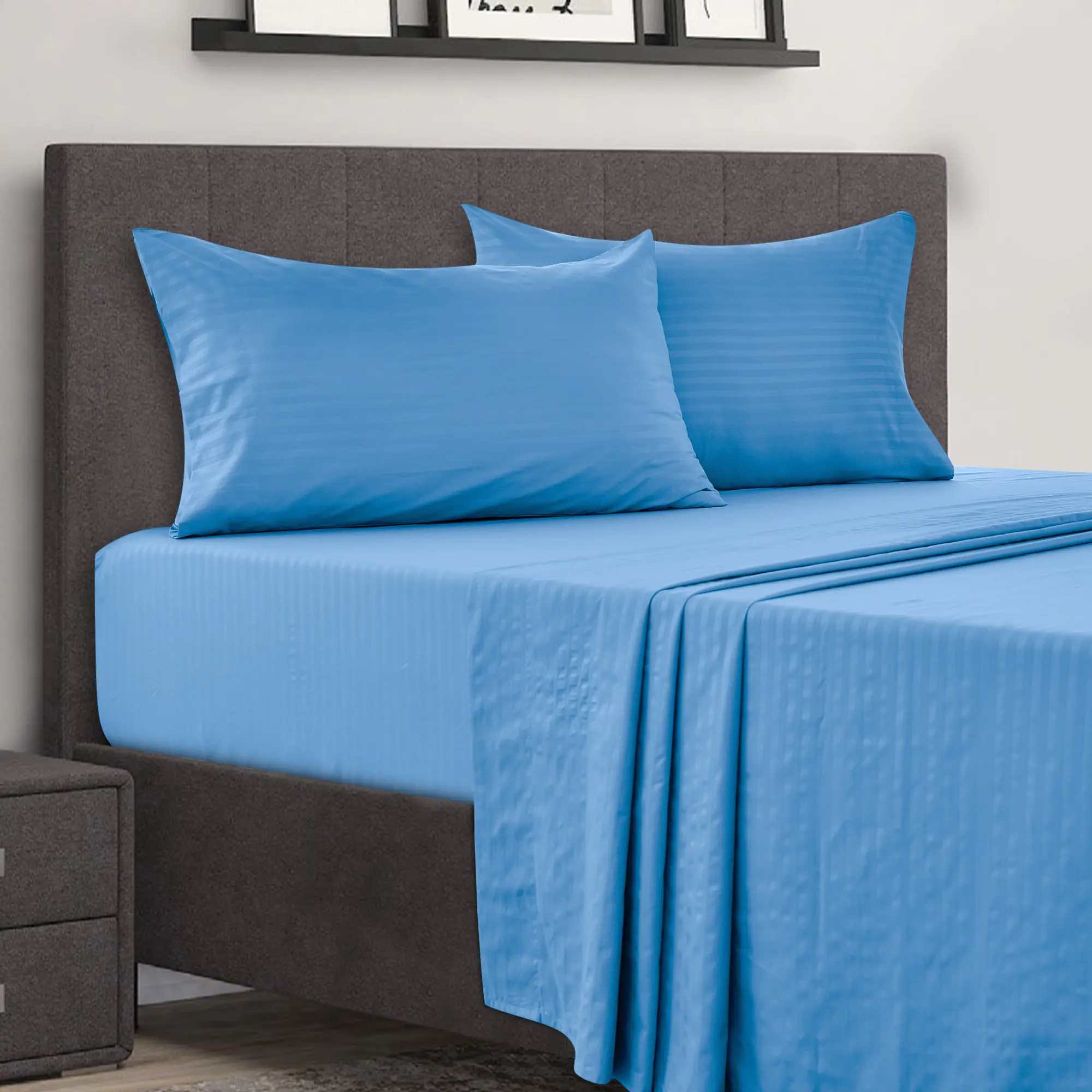 Our Full, Queen, King & Cal King is 4 Piece set which includes 1 flat sheet, 1 fitted sheet and 2 pillowcases.