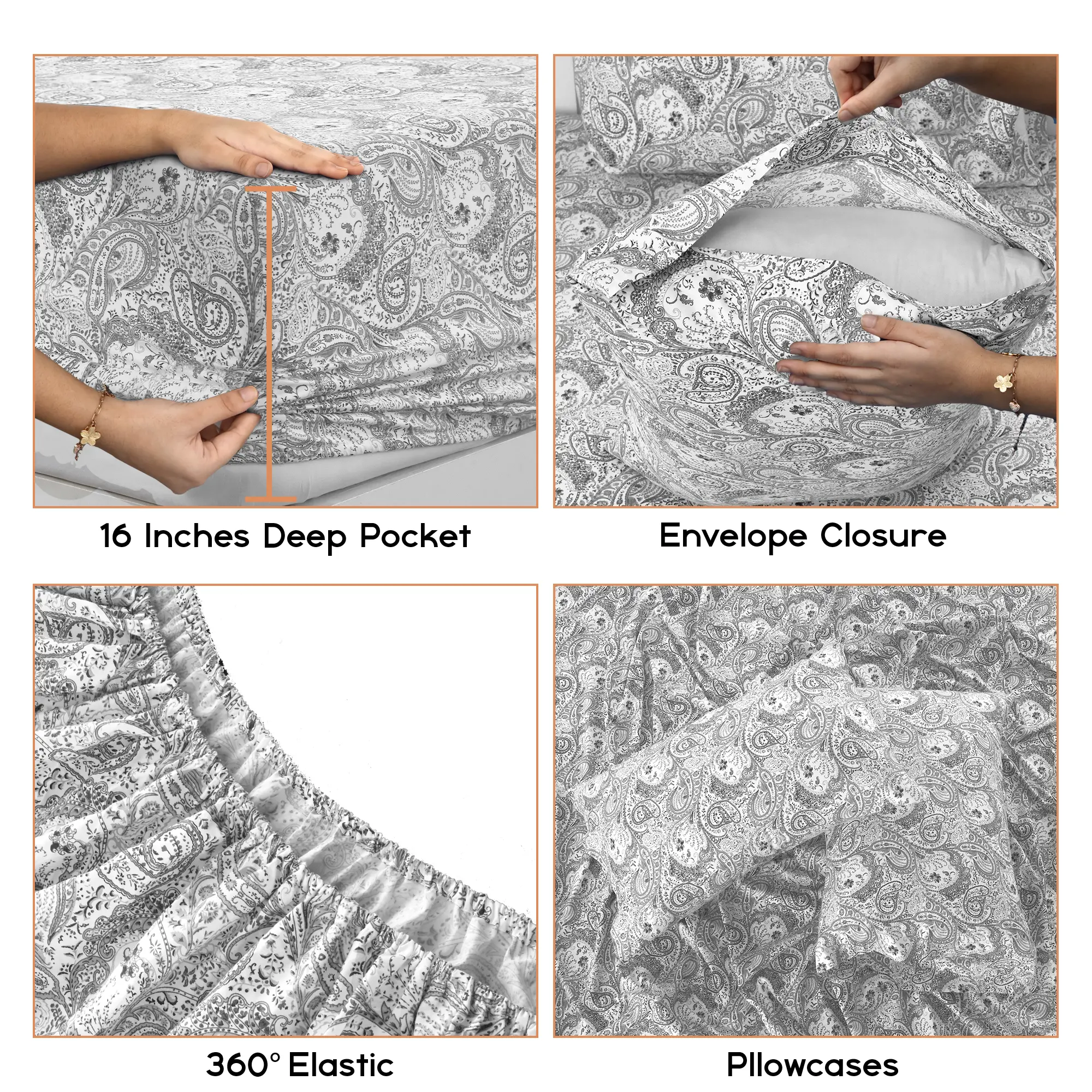 ·Fitted Sheet: 16" deep pocket fitted sheets