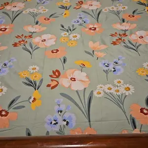 La tela es suave el color es como se ve en la foto y esta a buen precio la lave antes de ponerla en la cama así que no se si encogió pero no queda hasta abajo como se ve en las fotos o mi cama es muy alta por eso le doy 4 estrellas