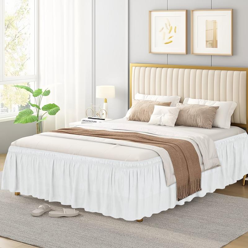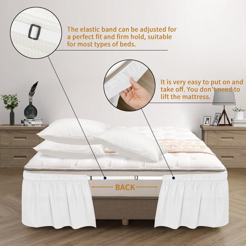 SUPER EASY TO PUT ON, DESIGNED TO FIT: Featuring a platform-free easy wrap around stretch & elastic adjustable construction, you can easily put this bed skirt on and off by yourself without lifting the mattress. This PureFit bed skirt fits Queen and King size mattresses.