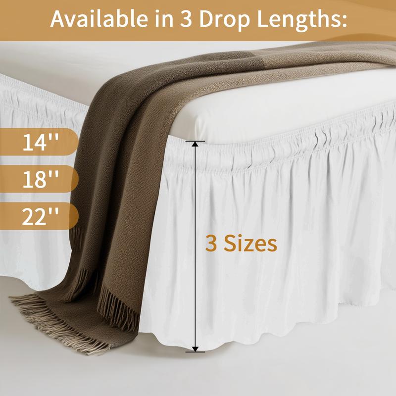 A GENEROUS 18-INCH DROP LENGTH: The dust ruffle/bed skirt has a generous drop of 18-inches length, reaches the floor easily and hides any under the bed storage, hides misshapen box springs, bed frames and bedposts, deflects dust and particles that might otherwise collect underneath your bed or simply to give your bed a uniform and sleek look.