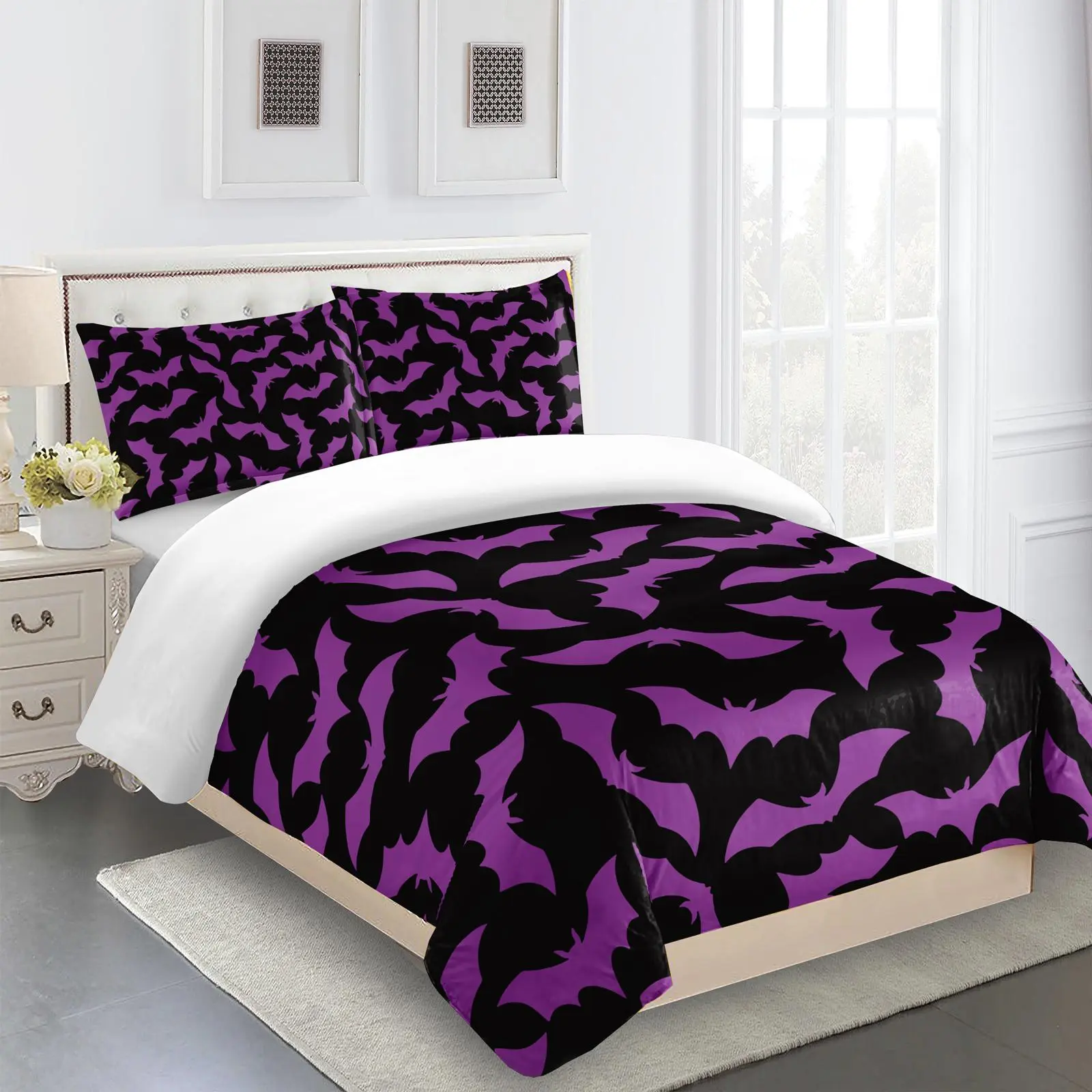 【Halloween Theme】: Featuring a bat pattern, this bedding set adds a festive touch to your bedroom decor for Halloween festivities.