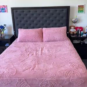 Muy buena calidad no destiñe pelusa y suave y hermosa como se ve aquí en la fotos me encantó le quedó perfecta mi cama!!!!
