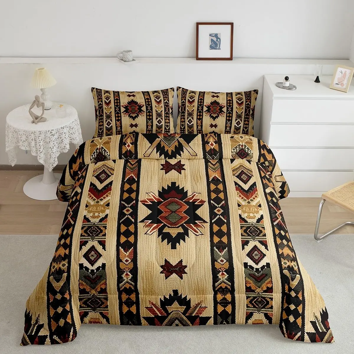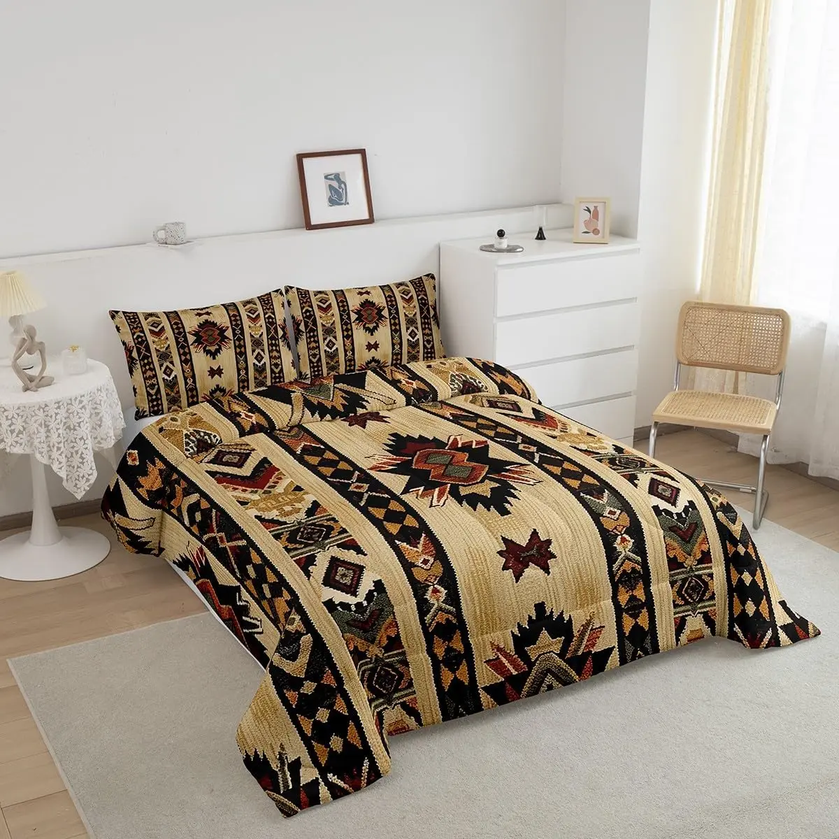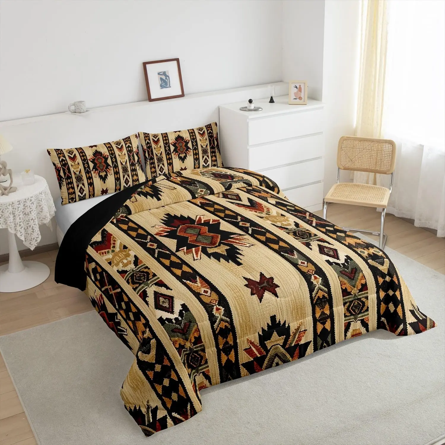 The comforter set is machine washable. Wash in a gentle cycle with cold water. Air under sunshine to dry, or tumble dry on low heat. Follow these tips for longevity and maintaining the set's appearance.