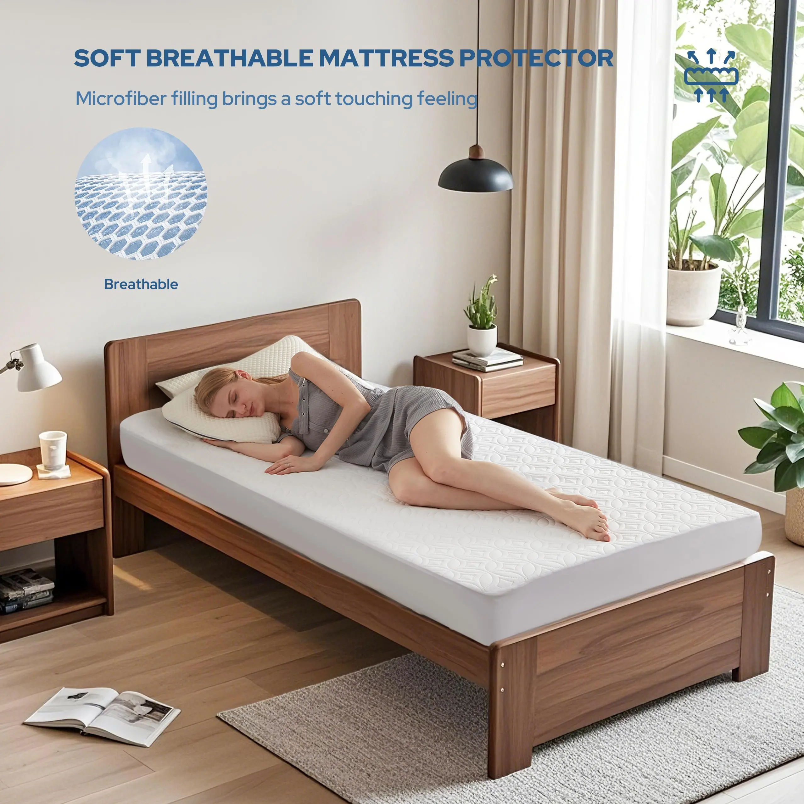 【Soft, Breathable and Noiseless】 The premium microfiber top layer and ergonomically designed microfiber filling bring a soft touch and provide excellent comfort. Reduce the annoying noise from the mattress sheet and effectively protect the mattress from moisture, sweat, accidental bedwetting.