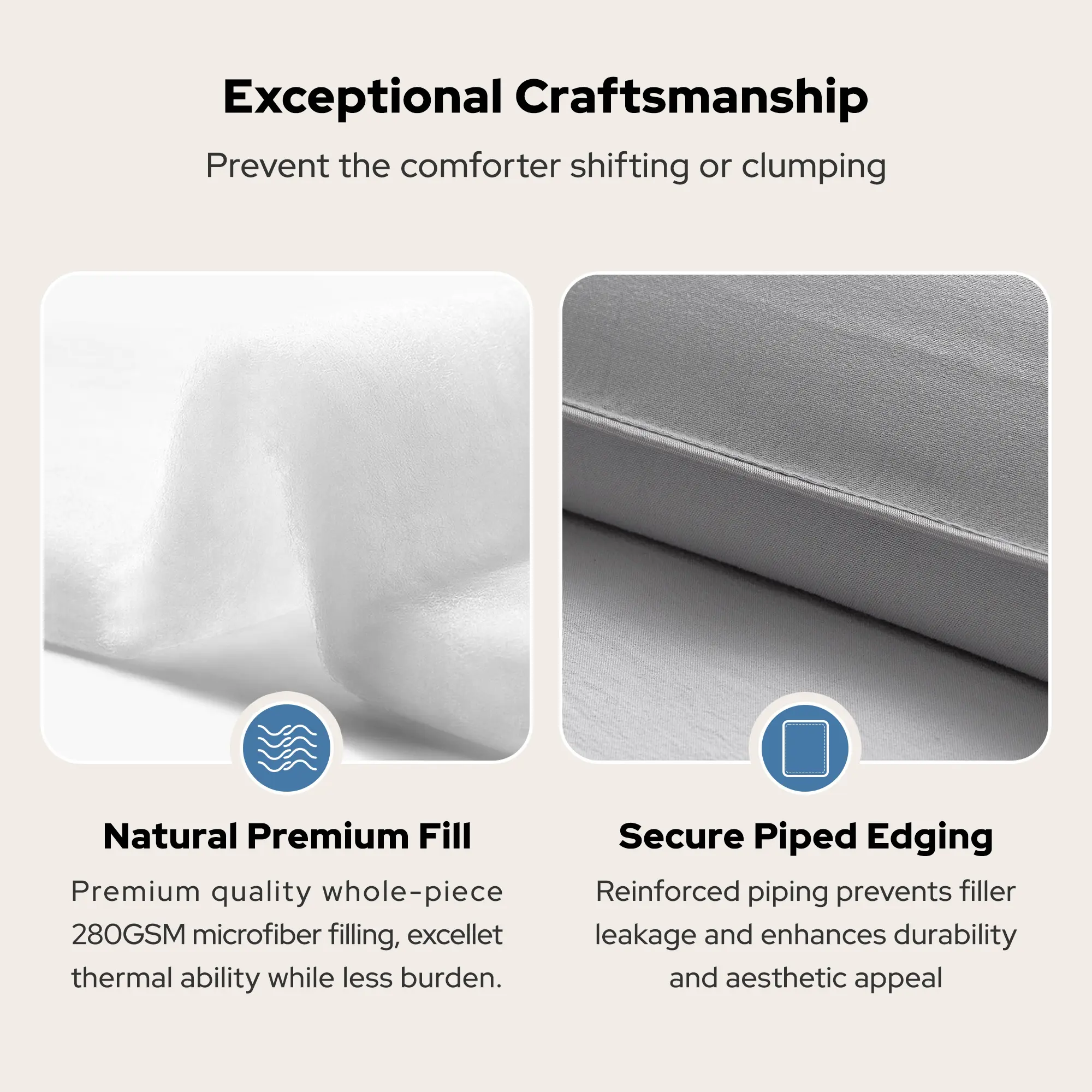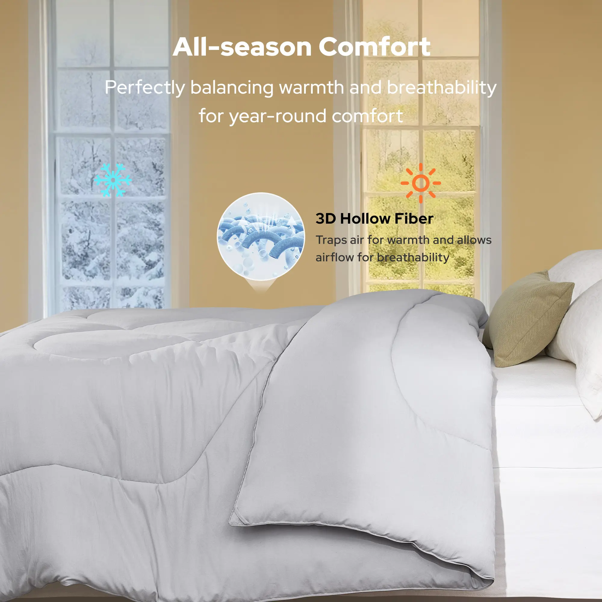 ·ALL-SEASON COMFORTDesigned with just-right filling, this comforter delivers balanced medium warmth and thickness without feeling heavy. Lightweight and breathable for summer, yet ultra-soft and cozy in winter—ideal for year-round use.