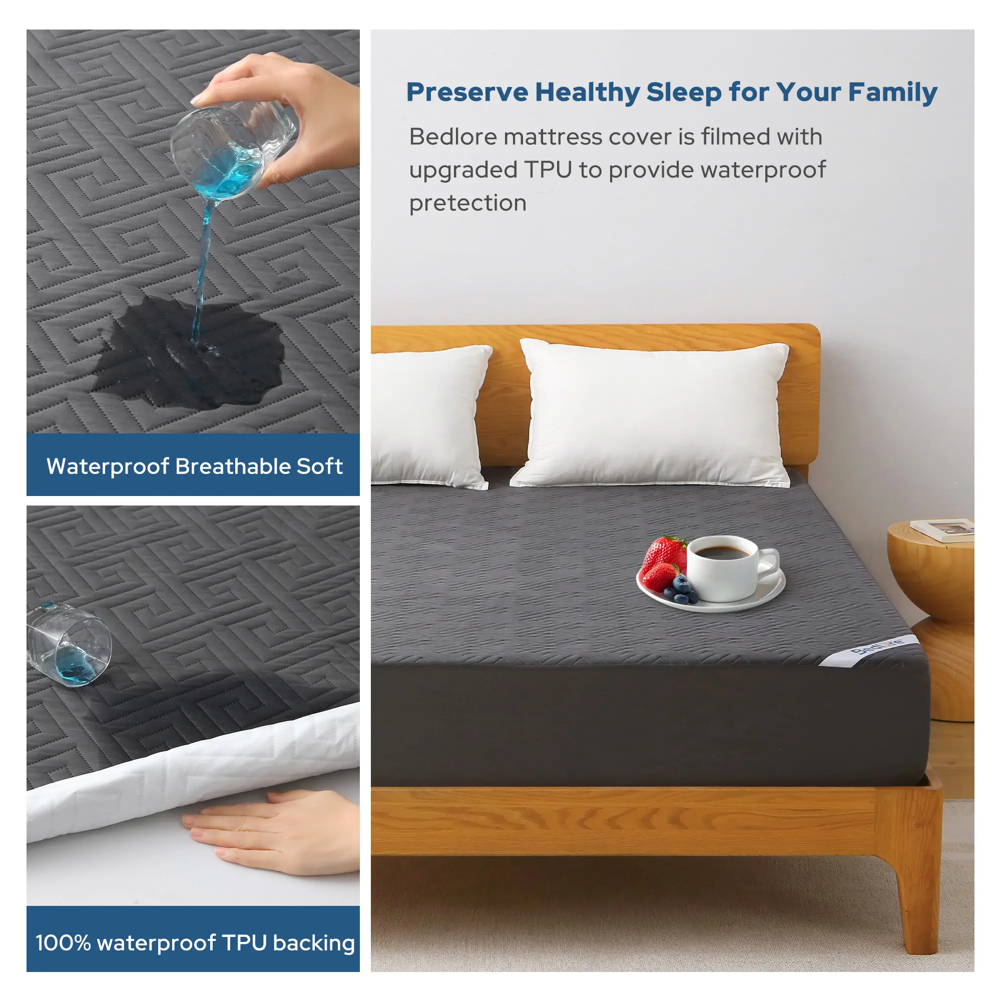 【BEDLORE】 Waterproof Mattress Cover with Fitted Sheet