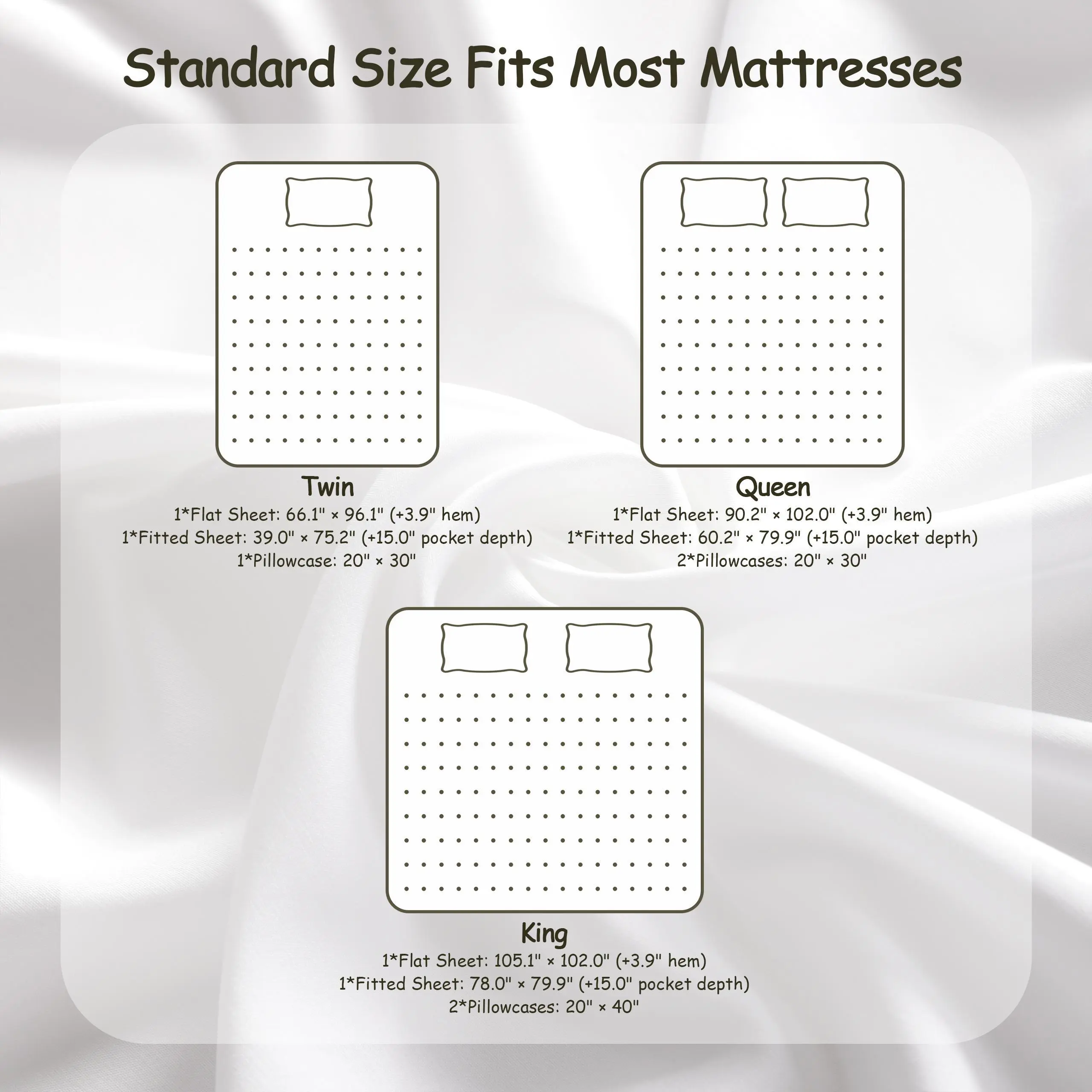 Flat Sheet: 105" × 102" (with 4" hem)