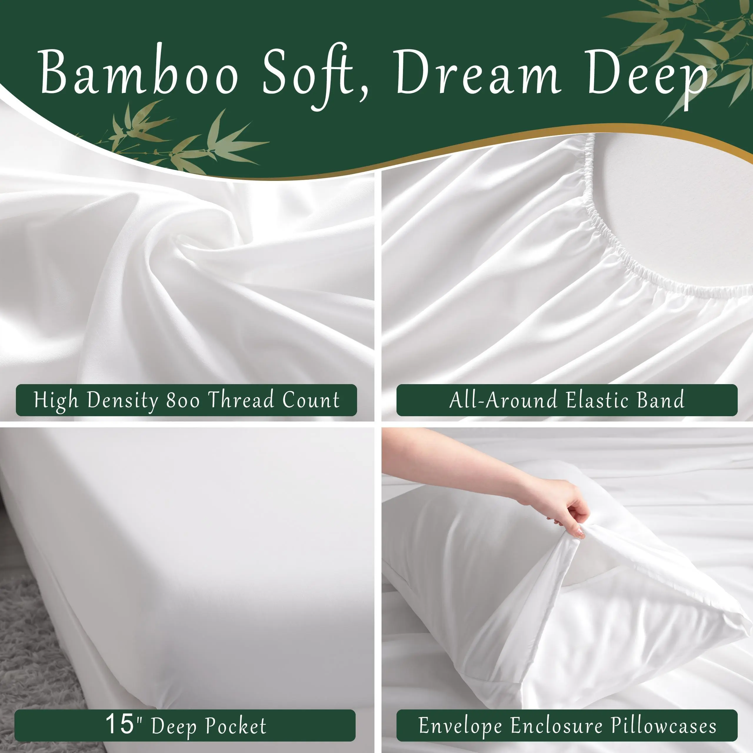 Naturally Soft & Breathable: Crafted from 100% bamboo viscose, our bedding offers a luxuriously soft feel while adapting to your body temperature for a cool, comfortable night’s sleep.