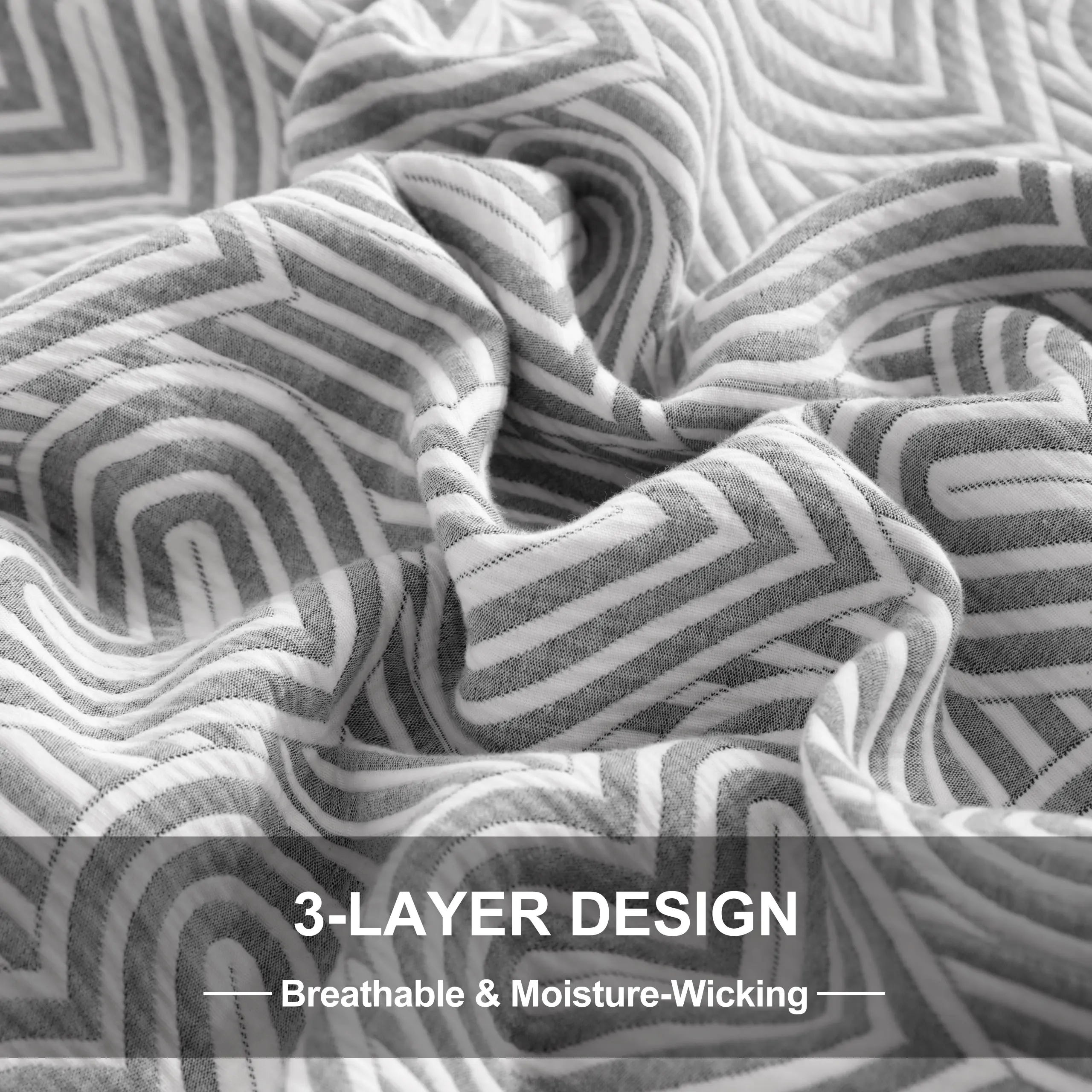 The beautiful diamond-quilted pattern is not only visually appealing but also highly functional. The stitching securely locks the three layers of gauze together to prevent shifting, bunching, or wrinkling. This ensures the cover maintains its shape and plush fullness wash after wash, while adding a beautiful, textured dimension.