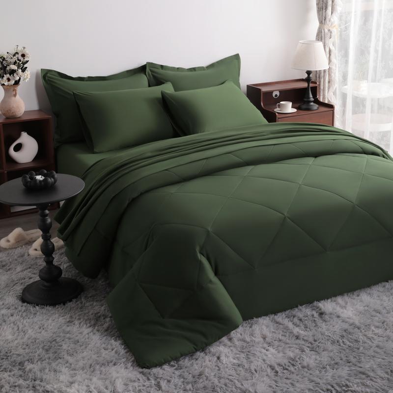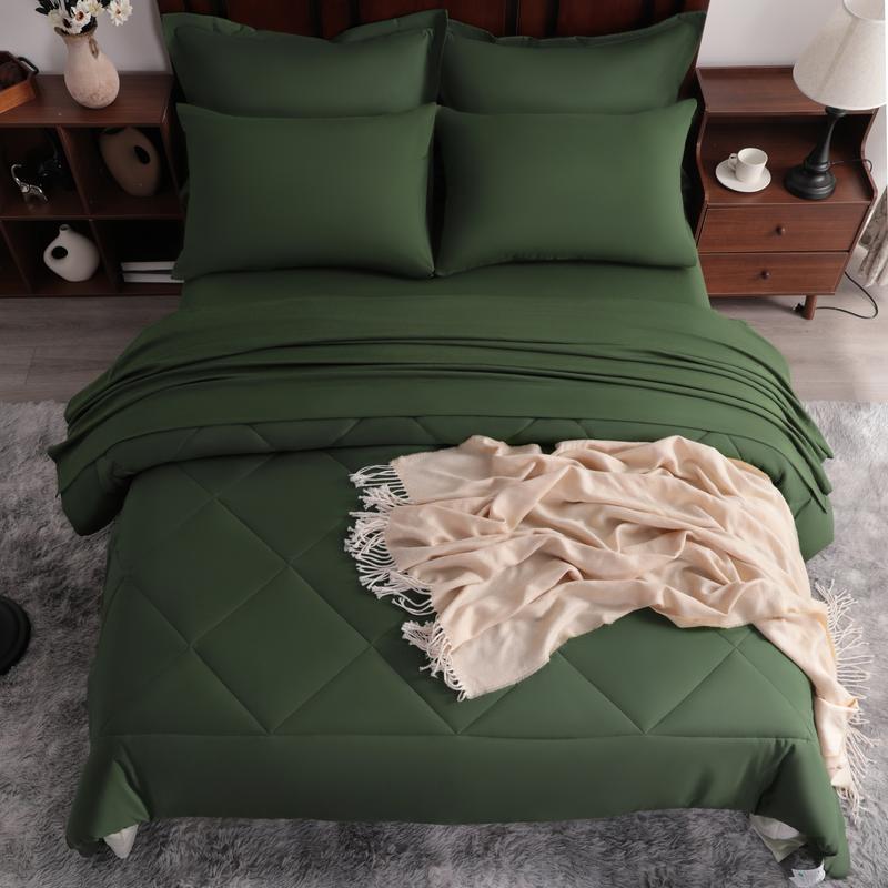 Transform your bedroom into a 5-star hotel retreat with our complete 7-piece bedding set. Designed for those who demand both style and comfort, this collection features our premium, heavyweight microfiber fabric. Experience the bliss of silky-soft, breathable, and hypoallergenic bedding that makes getting out of bed harder than ever.