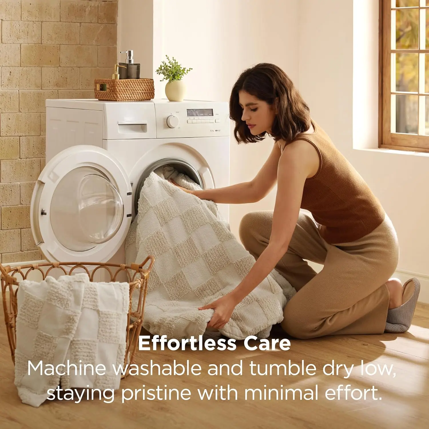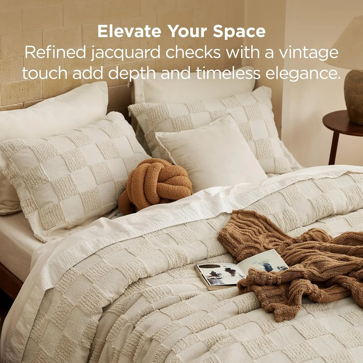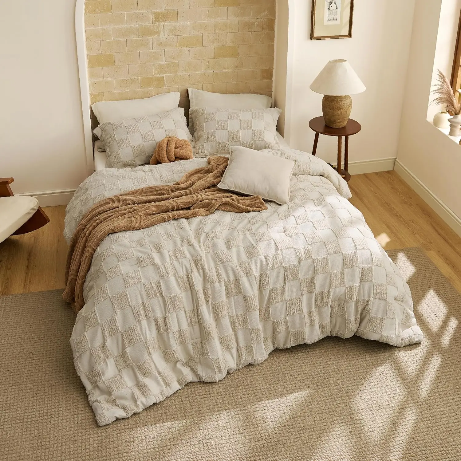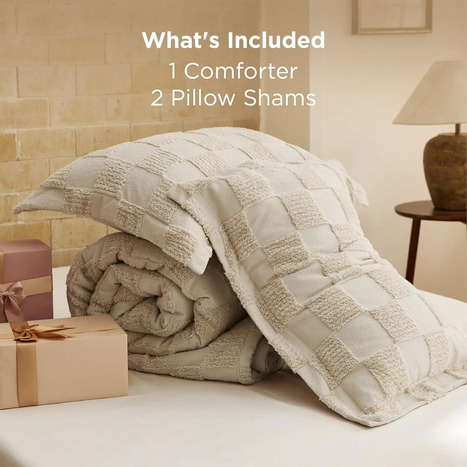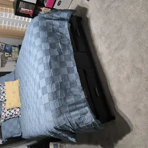The comforter is aesthetic however the checkered squares came with holes in them and I can see why because they so easily can rip. Not good quality. Very upset for the amount of money this costs.