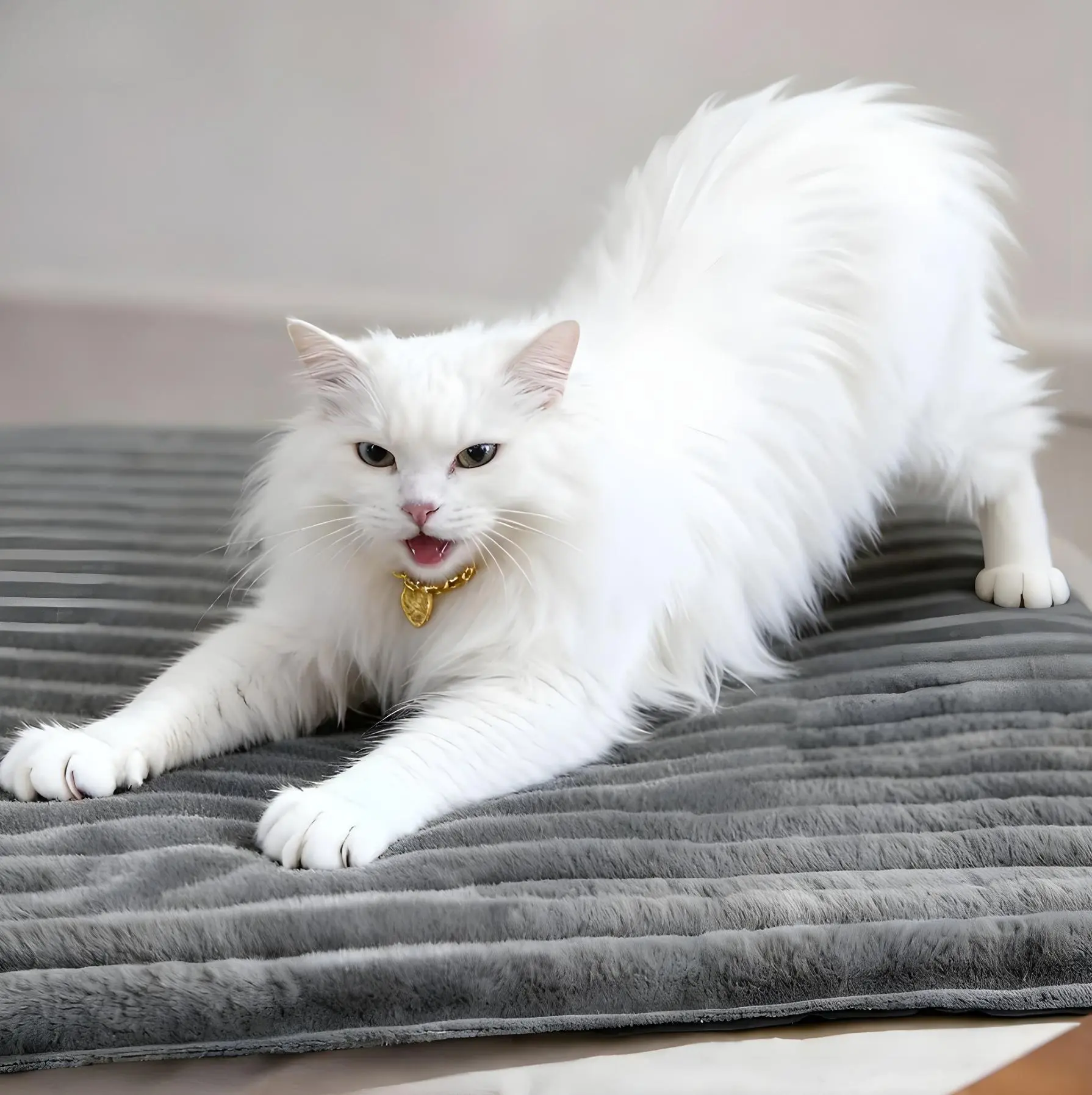 My cat is absolutely obsessed with this mat. She has two of her own pillows on my bed next to where I sleep. Lately, she’s been getting off her pillows and stretching out across mine leaving me with only a corner! I bought this mat and laid it down on her pillows in an effort to entice her back to her own spot. It has definitely worked!!! She only leaves it out of necessity…. and to play on occasion! 😊