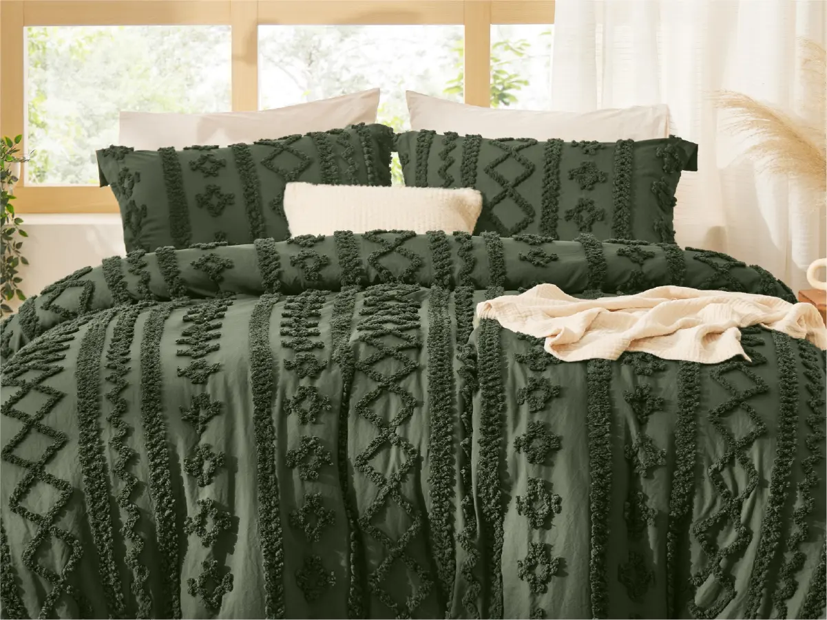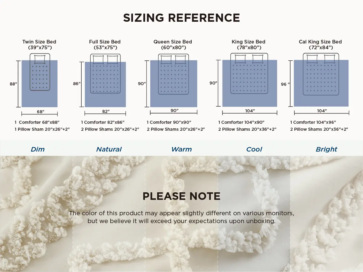 Boho Design: Inspired by a chic boho palette with elegant embroidered tufts, this comforter set adds a touch of exquisiteness and sophistication to any sleeping space.