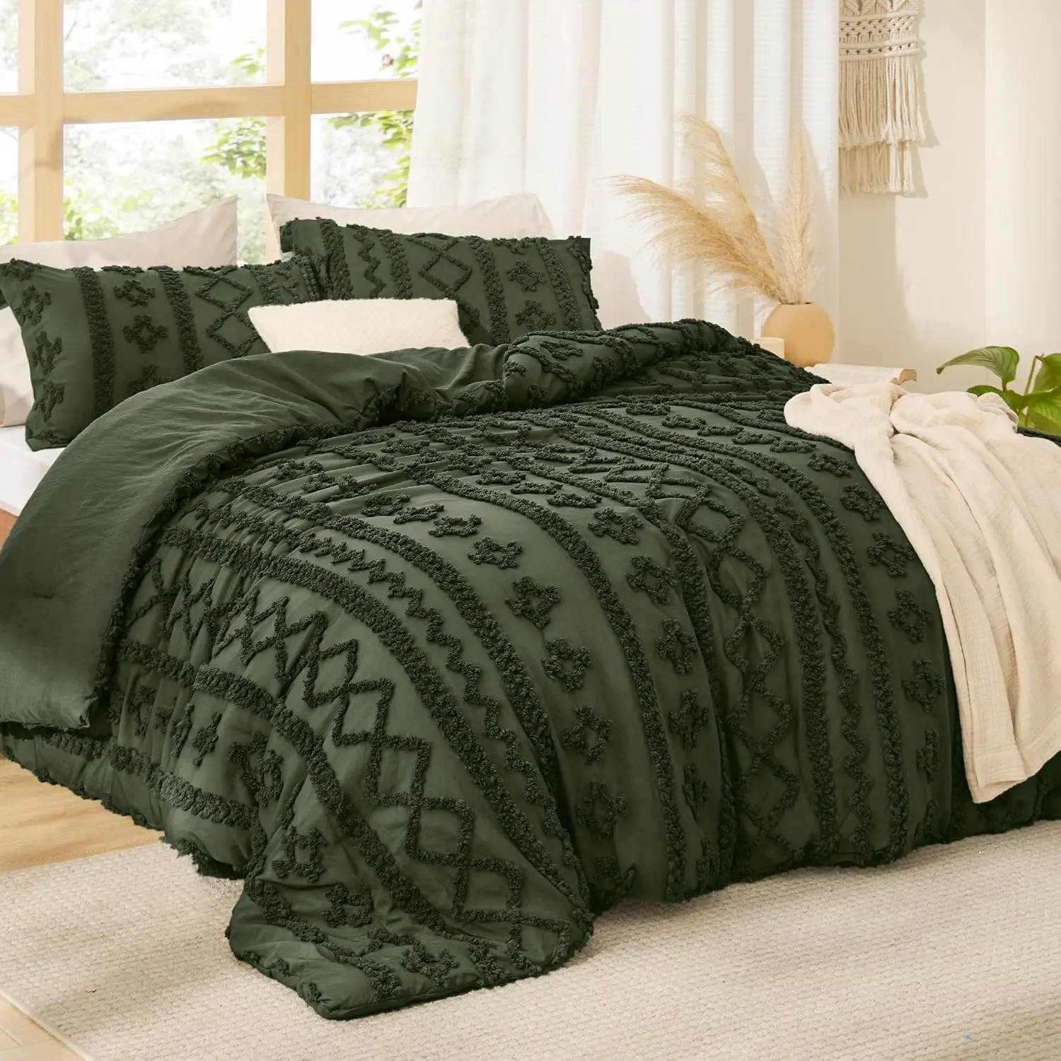 Boho Design: This comforter set, inspired by a chic boho palette, features elegant embroidered tufts. It adds a touch of exquisiteness and sophistication to any sleeping space. Perfect for those who love a bohemian vibe.