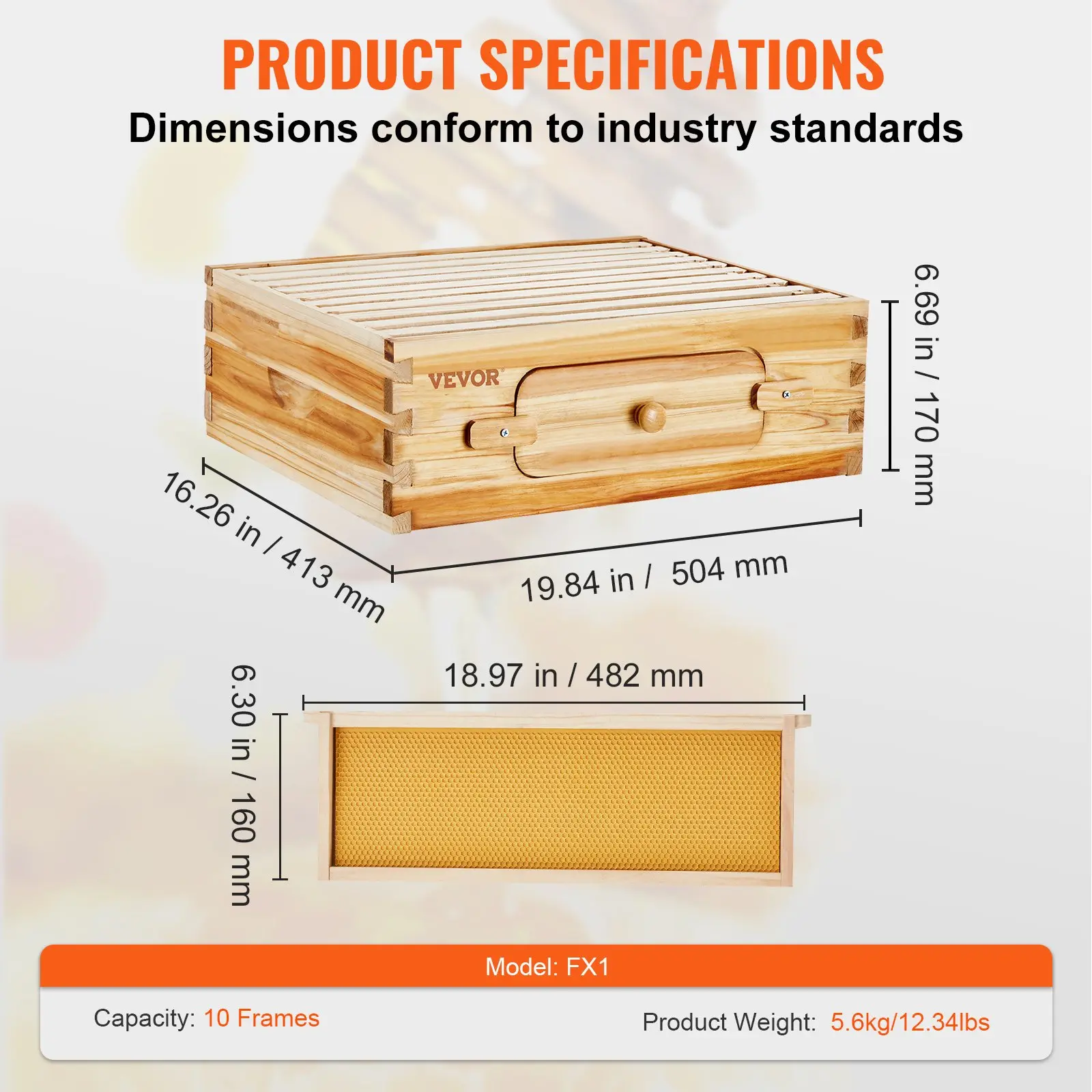 5. VEVOR Bee Hive 40 Frame Bee Hives Starter Kit, Beeswax Coated Cedar Wood, 2 Deep + 2 Medium Bee Boxes Langstroth Beehive Kit, Transparent Acrylic Windows with Foundations for Beginners Pro Beekeepers