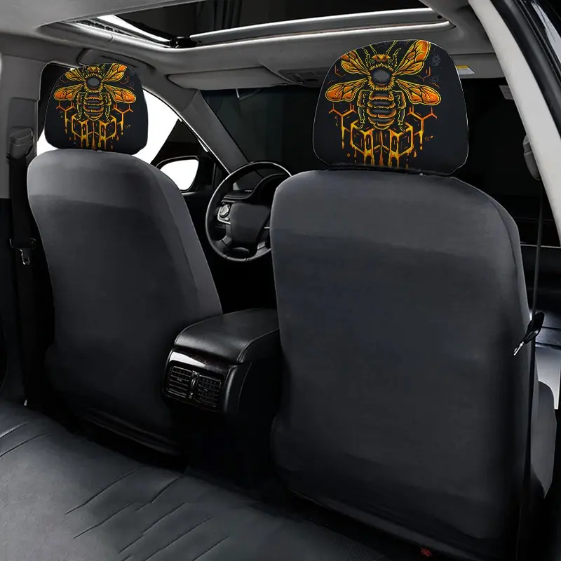 2pcs 11x10.2 inch Bee Pattern Car headrest covers, Car seat decorative, Universal,easy to install,durable car interior seat accessories.Suitable for daily commutes and travel,these are ideal gifts for car enthusiasts,0112LYY