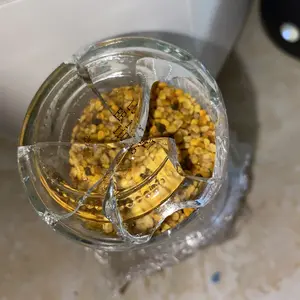 Package arrived with broken jar of pollen. Bits of broken glass mixed into pollen. What a waste of precious bee pollen, not happy. Maybe choose a different carrier, as this was obviously tossed onto the driveway.