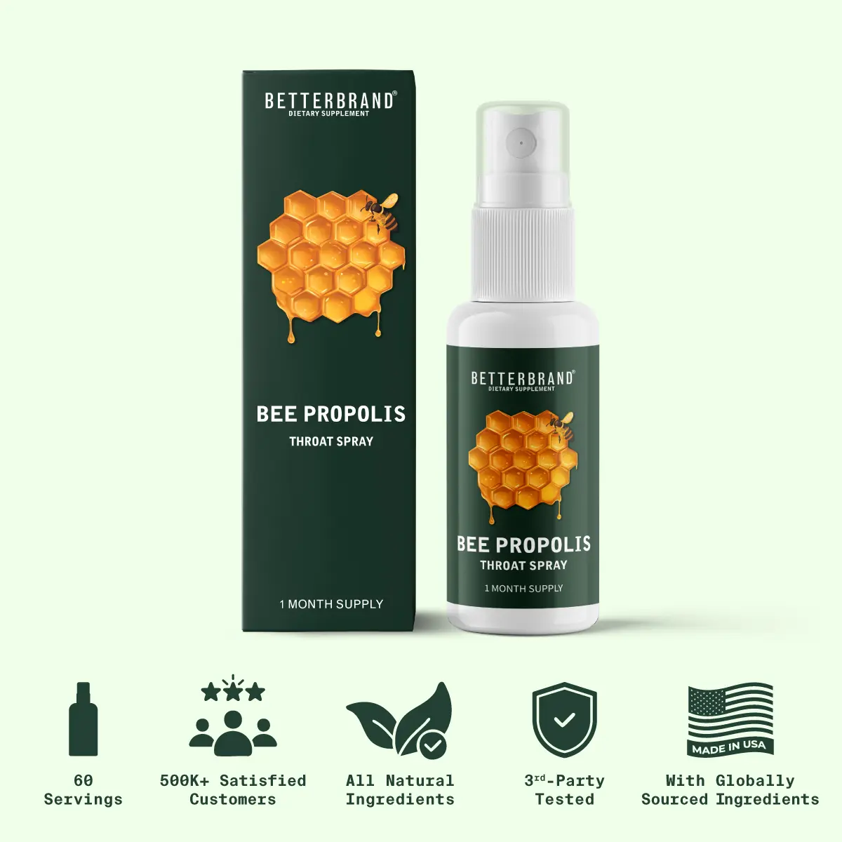 5. Betterbrand Bee Propolis Spray | Natural Immune Defense & Throat Soothing Supplement for Daily Oral Use