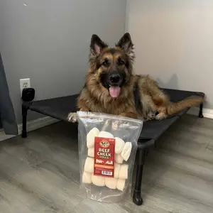 🔥 MUST-HAVE for dog owners! I’ve tried countless chews for my dog, but NOTHING compares to these beef cheek rolls! My German Shepherd, Zeus, is a heavy chewer, and he usually destroys treats in minutes. But these? They last for HOURS! 🐶💪