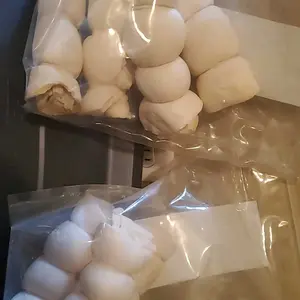 First time I order they looked like the photo 4 large rolls, filled the bag. I ordered a second time, buying 2 bags this time. The first bag is fills up less then half the bag with tiny rolls. And the second bag looks as though they have been chewed on already. I have a large dog, not impressed.