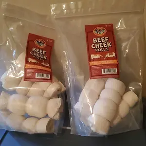 My boys loved these rolls so much that one of them wouldnât take his winter coat off because he had to get back to his beef cheek roll!! I have aggressive chewers and just wanted something different for them that wasnât rawhide or from another country. I love these and will order more. Thank you!!