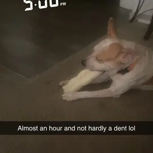 Dogs are obsessed! They have been chewing for an hour straight and haven’t made a dent!