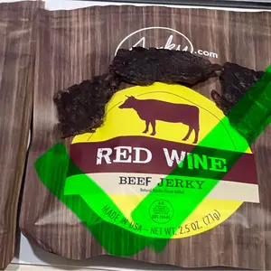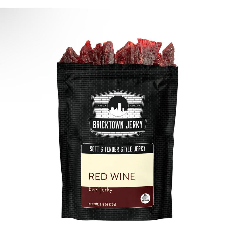 Red wine and jerky perfection! Medium-soft chew, bold red wine flavor with a touch of sweetness. Subtly amazing. 😋😋😋 try it in their small 11 beef jerky sampler pack.