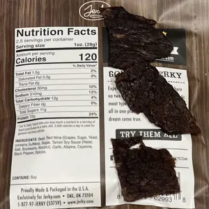Indulge in the delicious taste of fermented grape juice flavored jerky and enjoy a satisfying snack that combines chewiness and flavor. Perfect for any occasion!