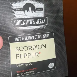 The scorpion pepper beef jerky is soft and tender texture. The meat was very dry like the desert, heavily seasoned with scorpion pepper. Smell reminds of me of Carolina reaper jerky. Spiciness is between ghost pepper and Carolina reaper. A must try for super spicy, dry, soft jerky lovers.